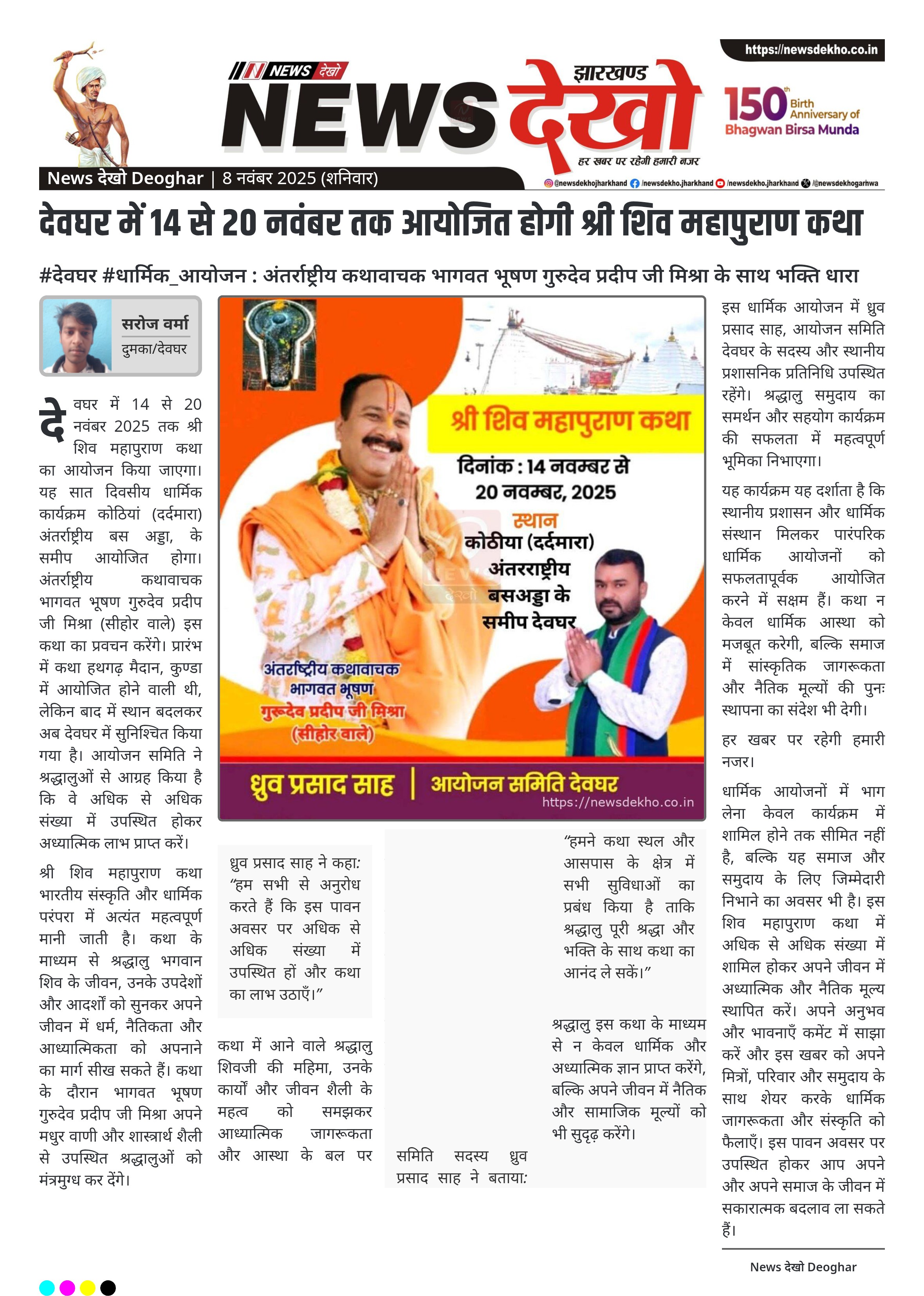 न्यूज़ देखो: देवघर में शिव महापुराण कथा श्रद्धालुओं को अध्यात्मिक मार्गदर्शन प्रदान करेगी