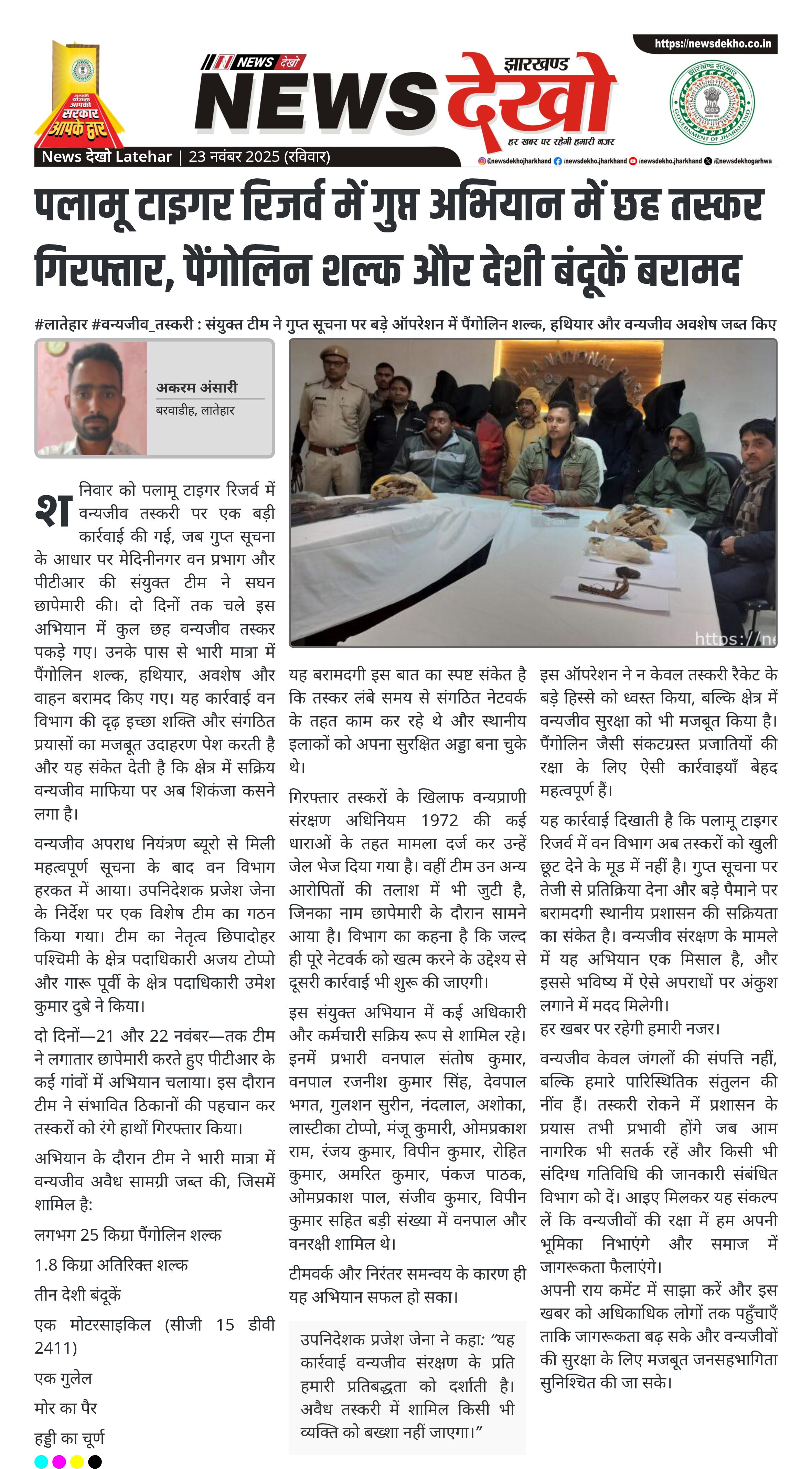 - पीटीआर और मेदिनीनगर वन प्रभाग की टीम ने छह तस्करों को पकड़ा।