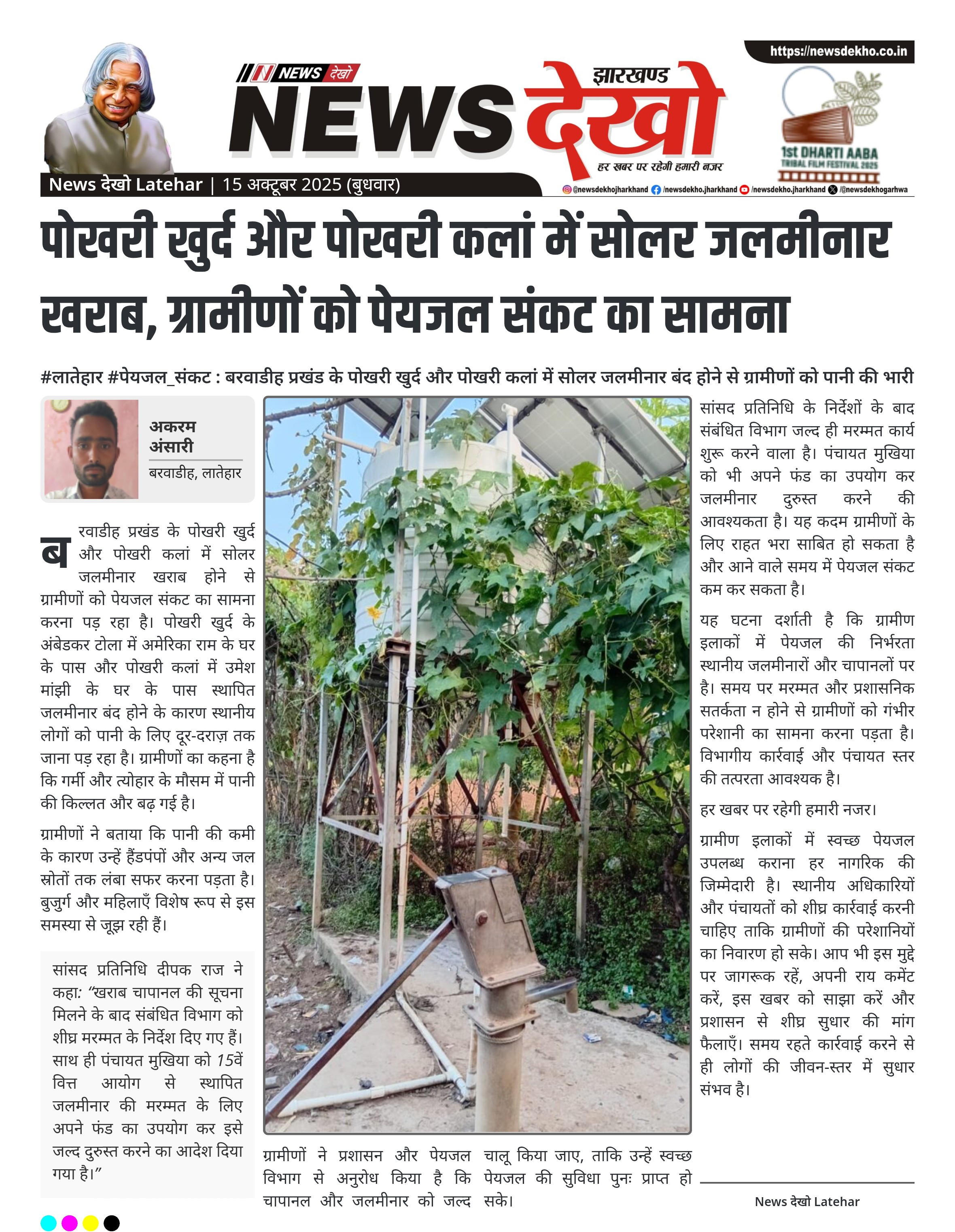 #लातेहार #पेयजल_संकट : बरवाडीह प्रखंड के पोखरी खुर्द और पोखरी कलां में सोलर जलमीनार बंद होने से ग्रामीणों को पानी की भारी परेशानी