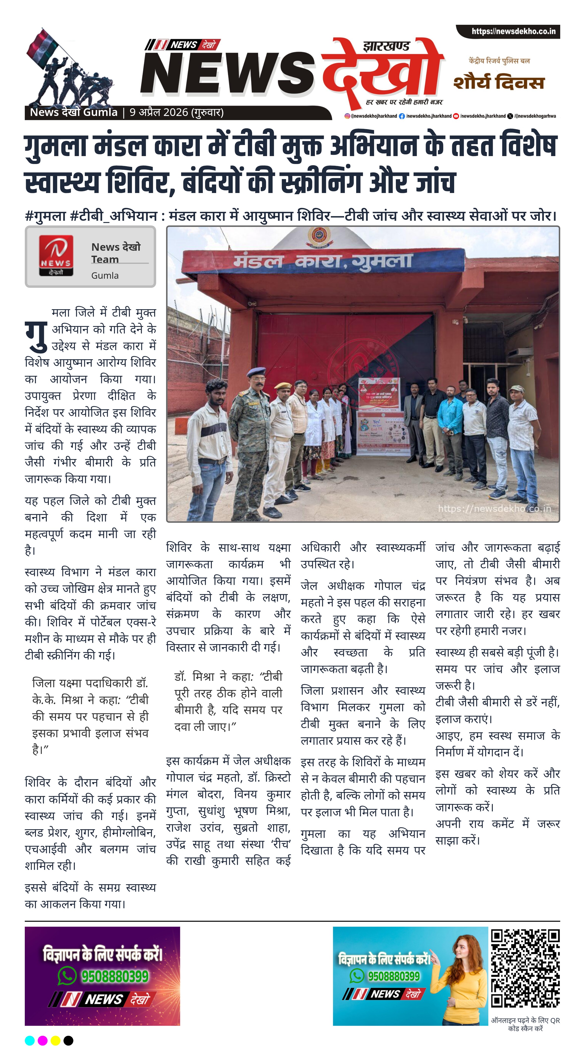 गुमला का यह अभियान दिखाता है कि यदि समय पर जांच और जागरूकता बढ़ाई जाए, तो टीबी जैसी बीमारी पर नियंत्रण संभव है। अब जरूरत है कि यह प्रयास लगातार जारी रहे। हर खबर पर रहेगी हमारी नजर।