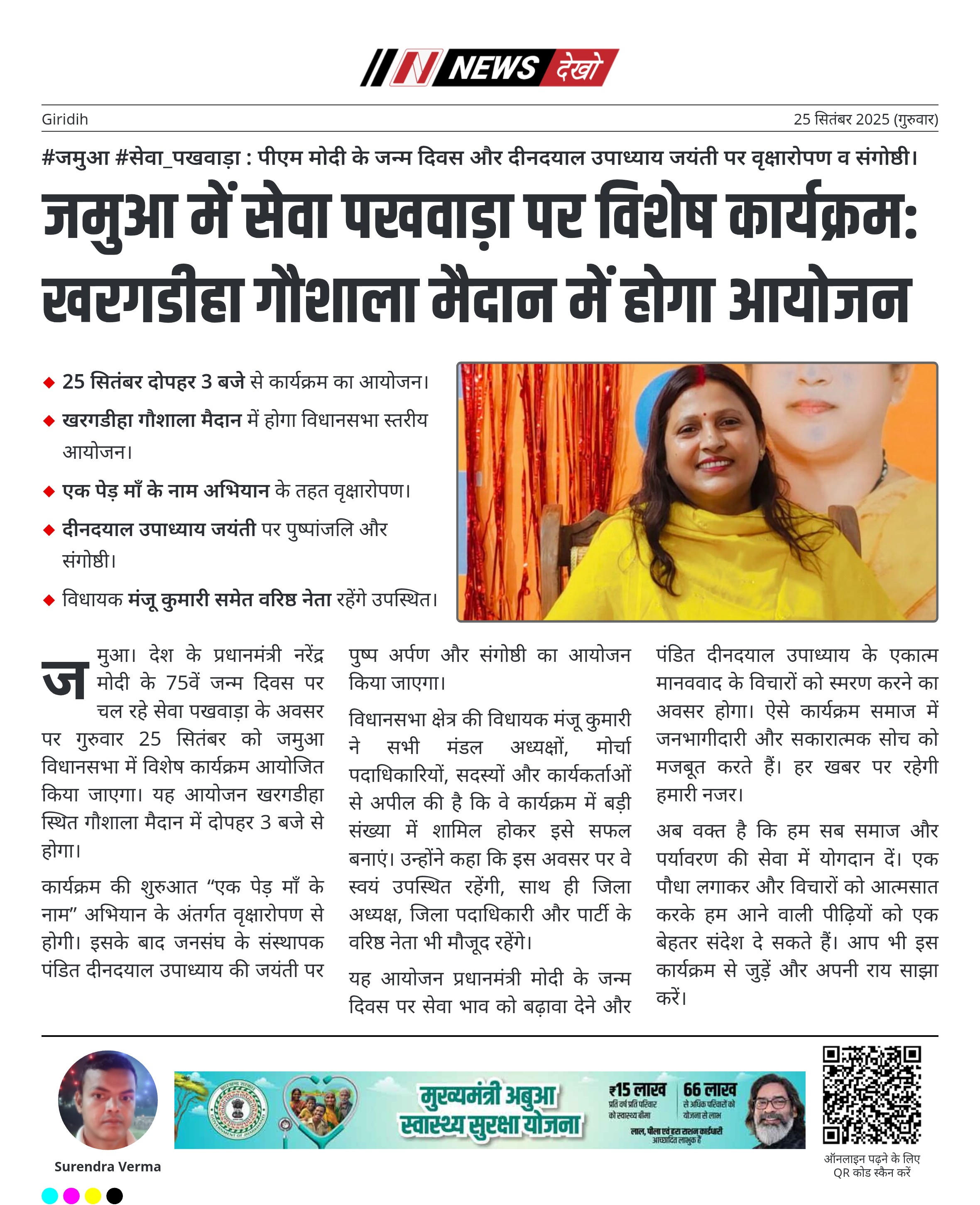 #जमुआ #सेवा_पखवाड़ा : पीएम मोदी के जन्म दिवस और दीनदयाल उपाध्याय जयंती पर वृक्षारोपण व संगोष्ठी।