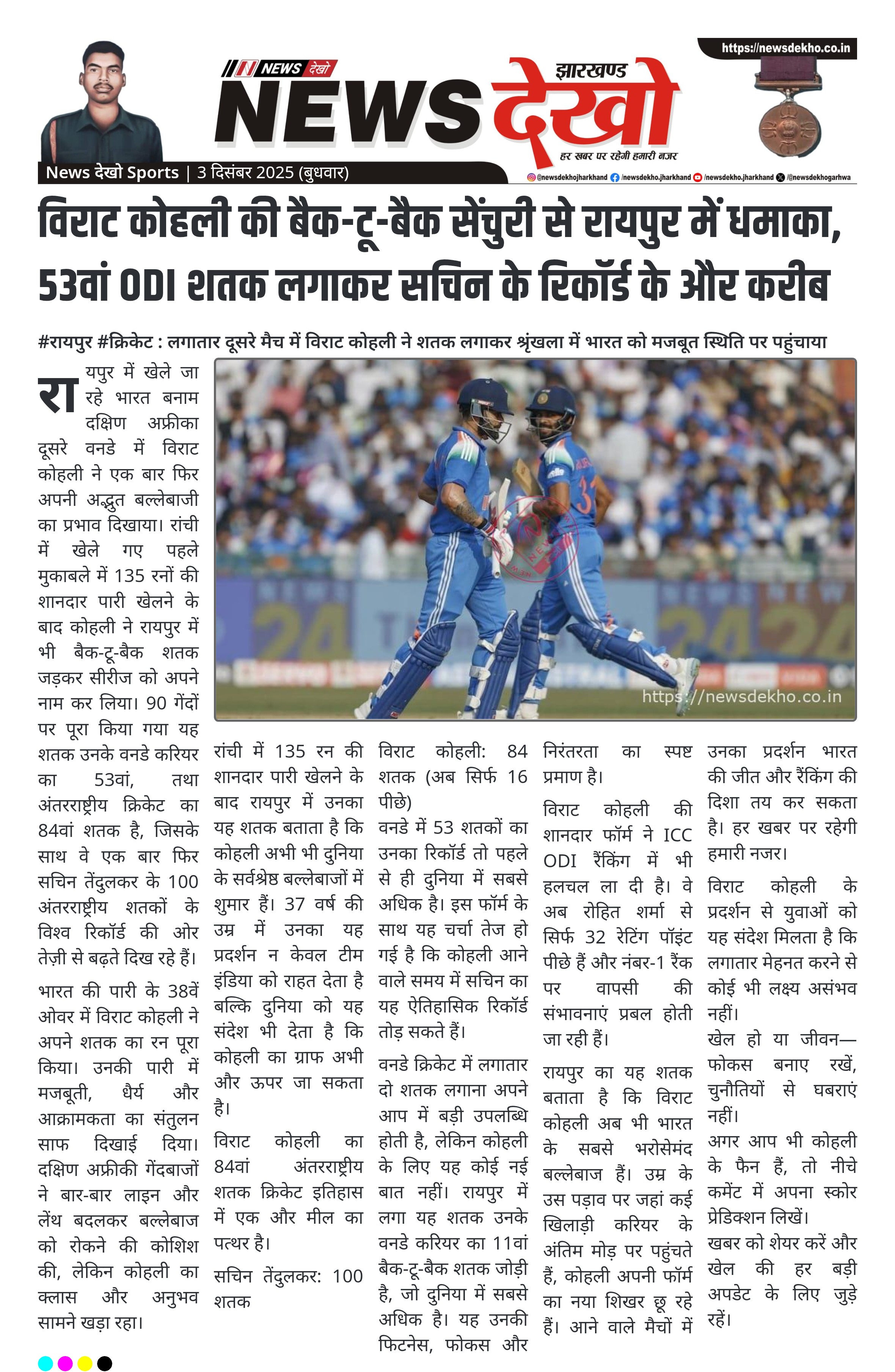 विराट कोहली की बैक-टू-बैक सेंचुरी से रायपुर में धमाका, 53वां ODI शतक लगाकर सचिन के रिकॉर्ड के और करीब