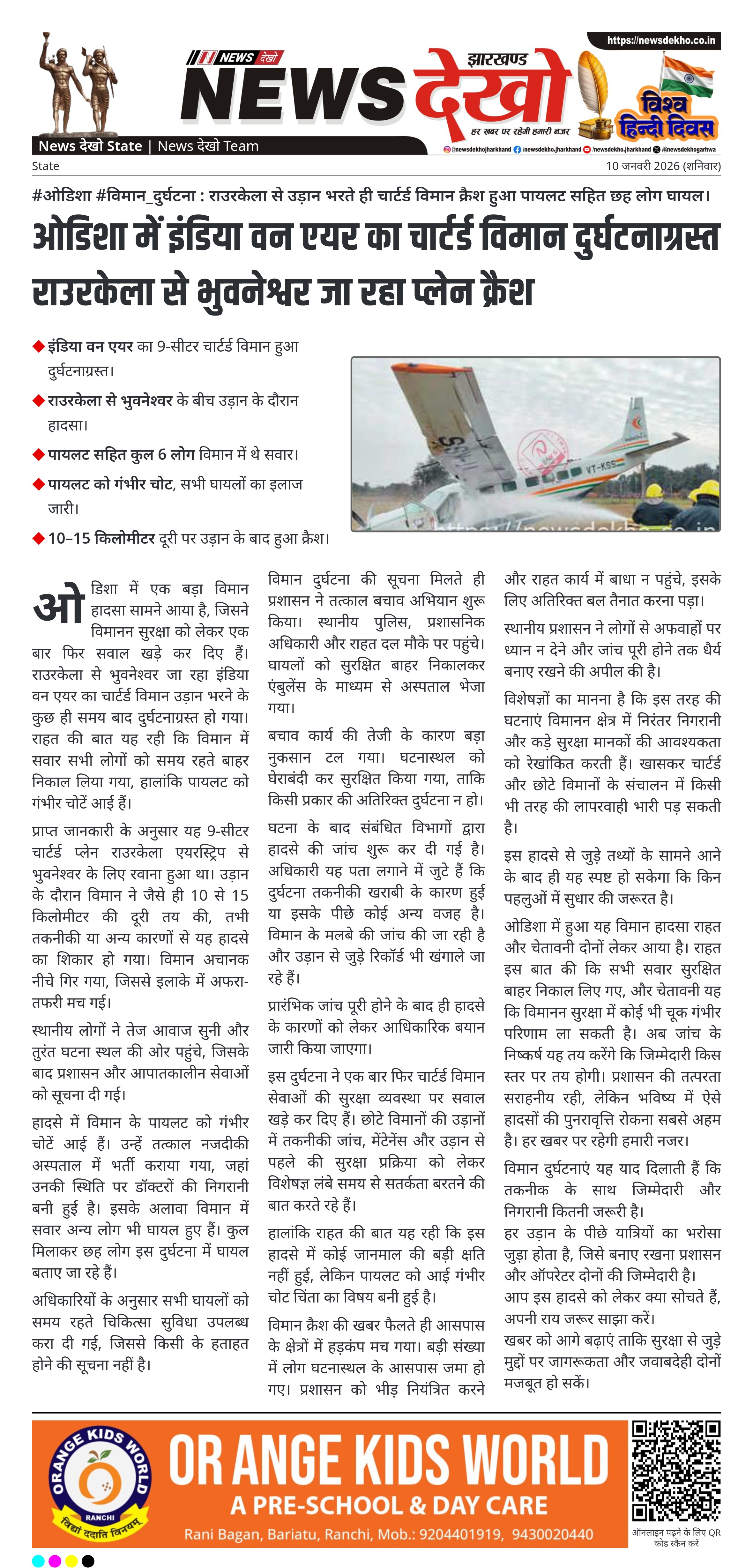 ओडिशा में इंडिया वन एयर का चार्टर्ड विमान दुर्घटनाग्रस्त राउरकेला से भुवनेश्वर जा रहा प्लेन क्रैश