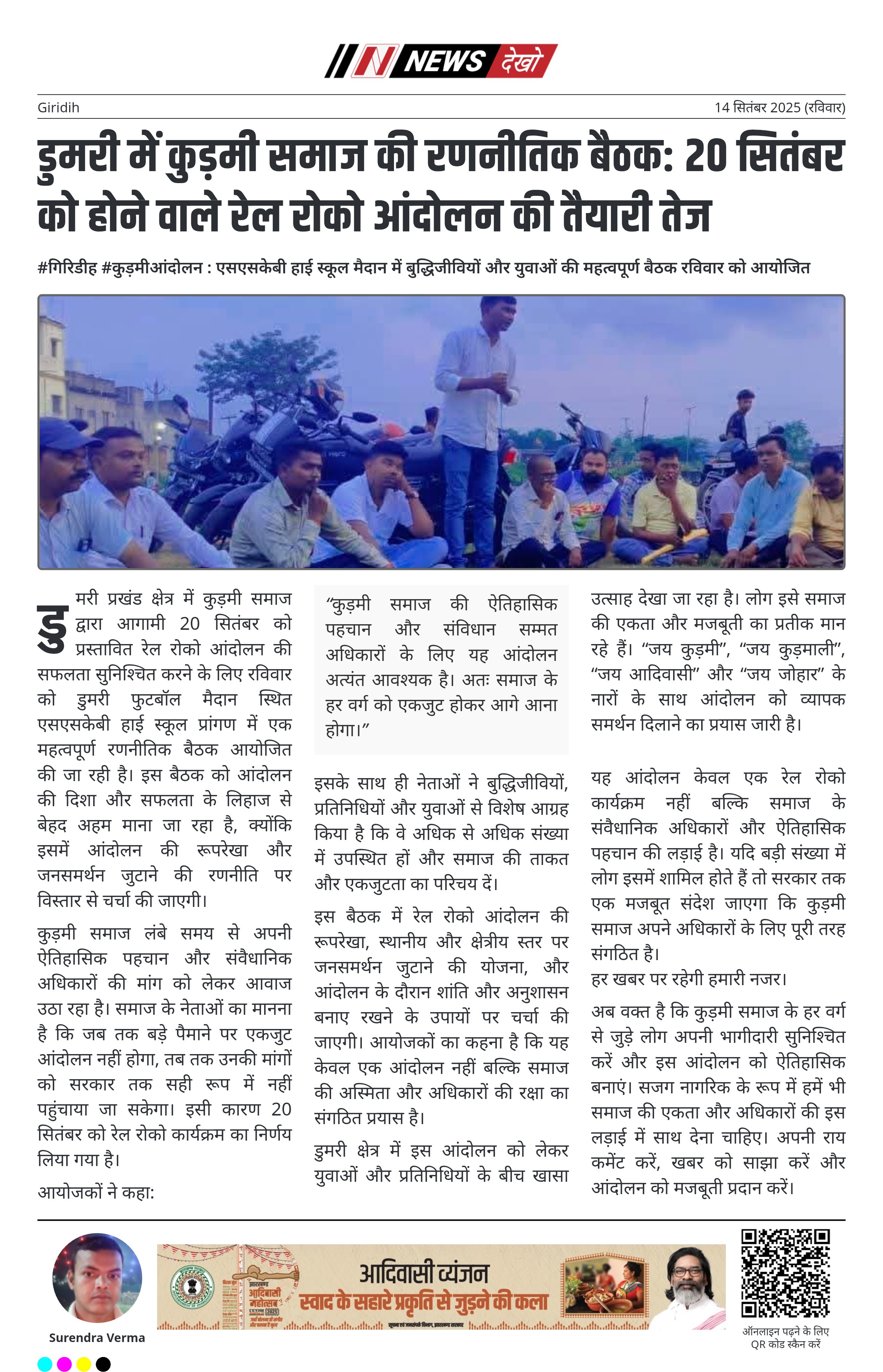 यह आंदोलन केवल एक रेल रोको कार्यक्रम नहीं बल्कि समाज के संवैधानिक अधिकारों और ऐतिहासिक पहचान की लड़ाई है। यदि बड़ी संख्या में लोग इसमें शामिल होते हैं तो सरकार तक एक मजबूत संदेश जाएगा कि कुड़मी समाज अपने अधिकारों के लिए पूरी तरह संगठित है।