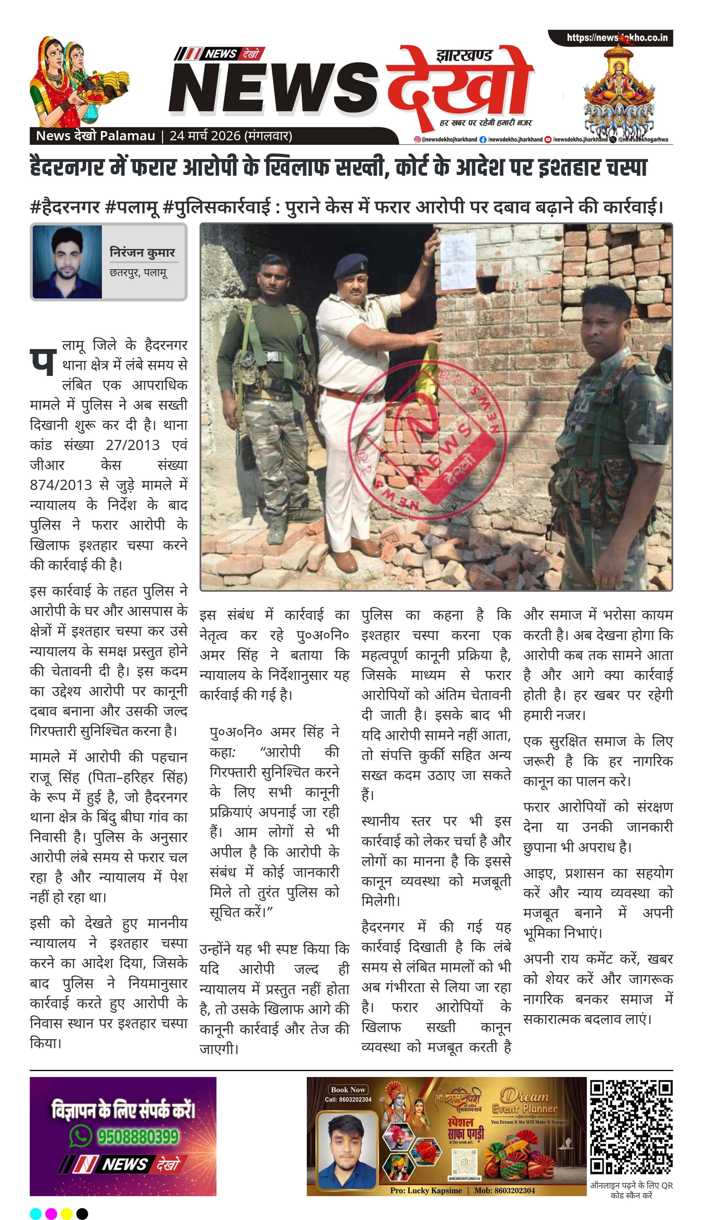 • फरार आरोपी राजू सिंह के खिलाफ इश्तहार चस्पा।