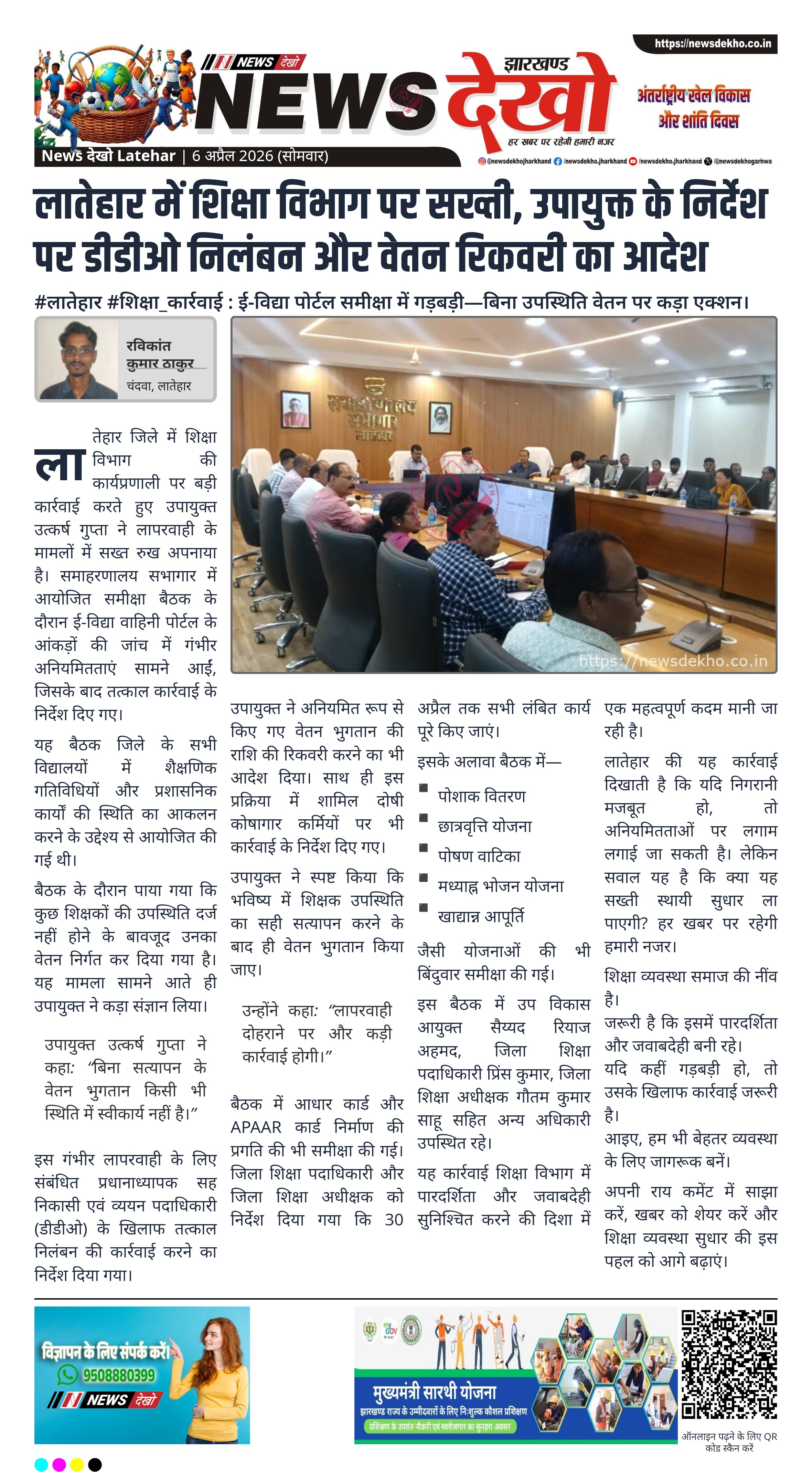 #लातेहार #शिक्षा_कार्रवाई : ई-विद्या पोर्टल समीक्षा में गड़बड़ी—बिना उपस्थिति वेतन पर कड़ा एक्शन।