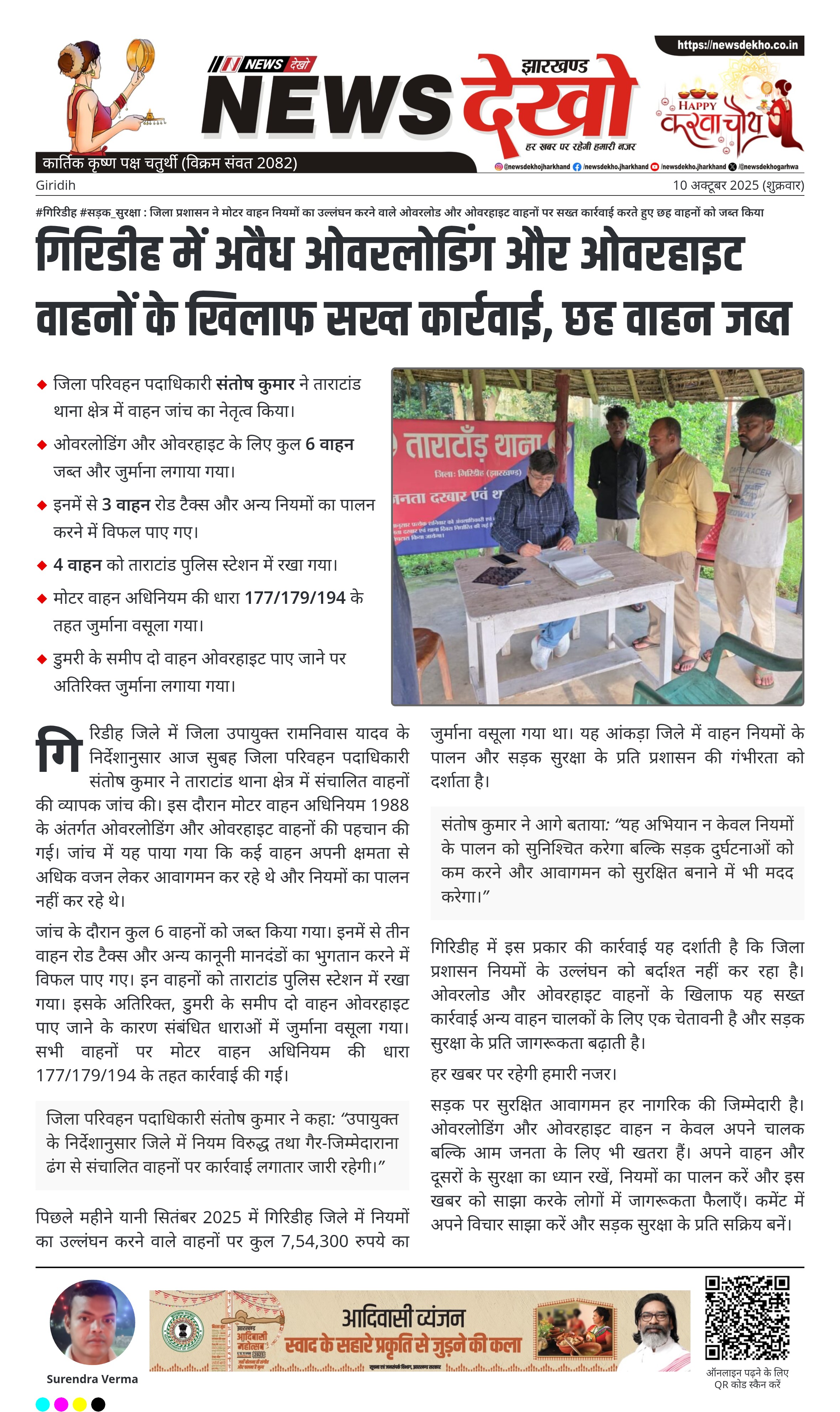 - जिला परिवहन पदाधिकारी संतोष कुमार ने ताराटांड थाना क्षेत्र में वाहन जांच का नेतृत्व किया।