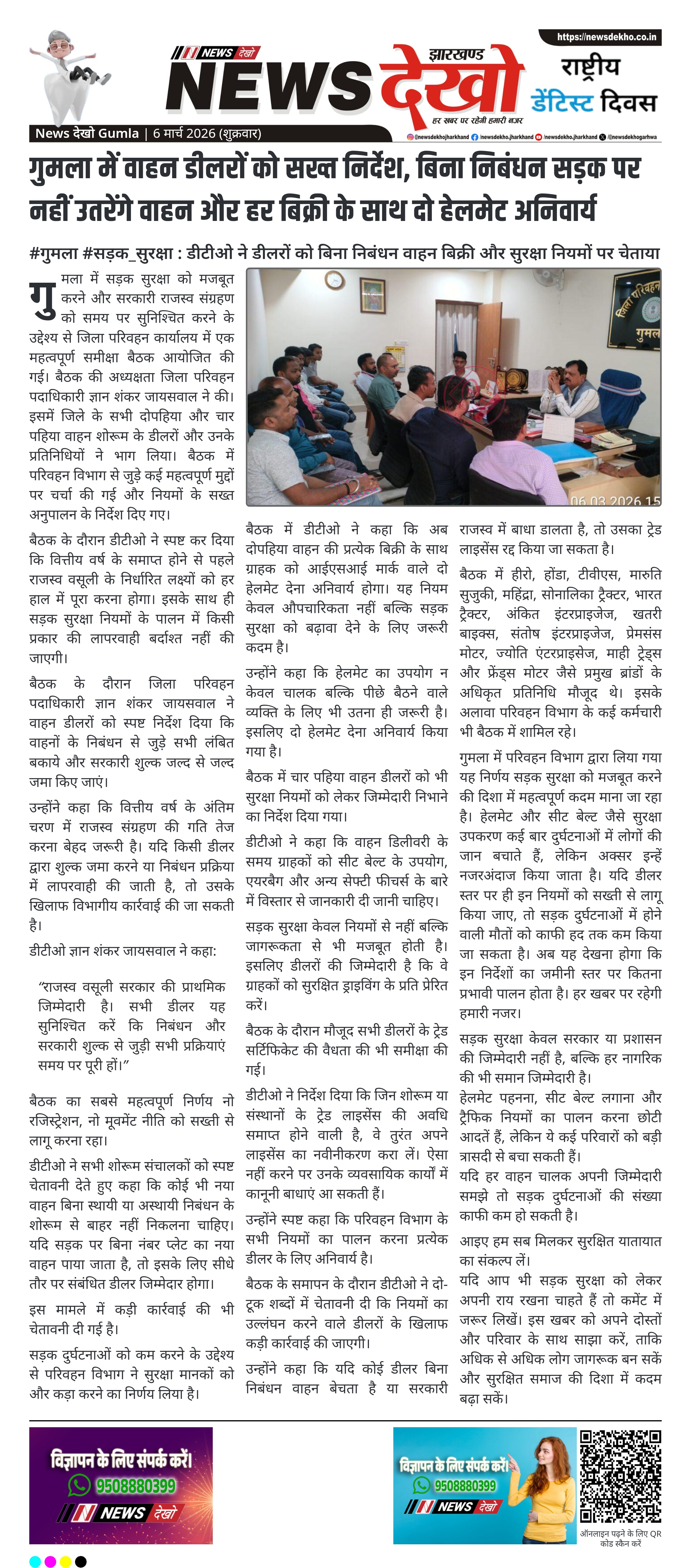 #गुमला #सड़क_सुरक्षा : डीटीओ ने डीलरों को बिना निबंधन वाहन बिक्री और सुरक्षा नियमों पर चेताया।