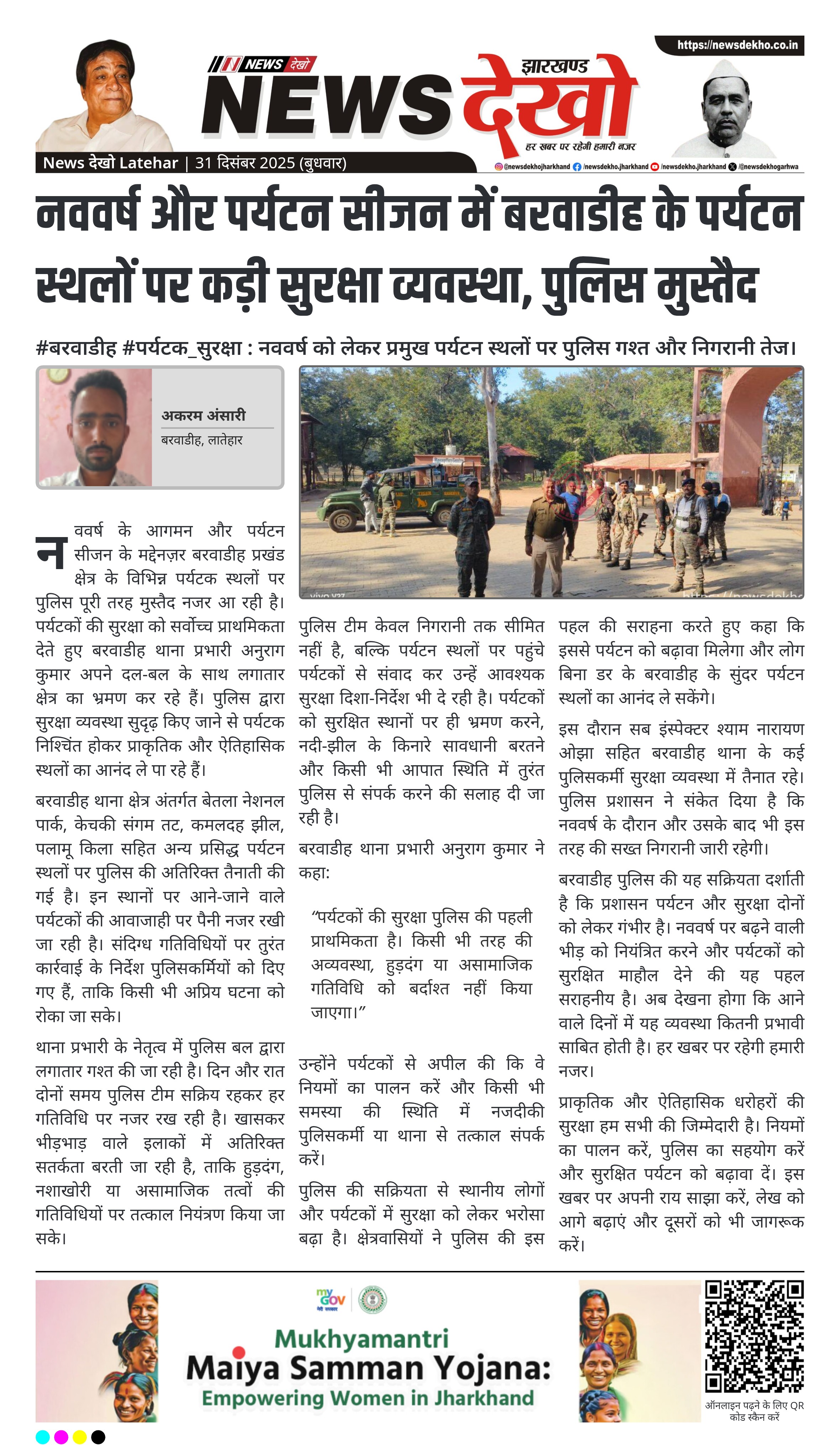 बरवाडीह पुलिस की यह सक्रियता दर्शाती है कि प्रशासन पर्यटन और सुरक्षा दोनों को लेकर गंभीर है। नववर्ष पर बढ़ने वाली भीड़ को नियंत्रित करने और पर्यटकों को सुरक्षित माहौल देने की यह पहल सराहनीय है। अब देखना होगा कि आने वाले दिनों में यह व्यवस्था कितनी प्रभावी साबित होती है। हर खबर पर रहेगी हमारी नजर।
