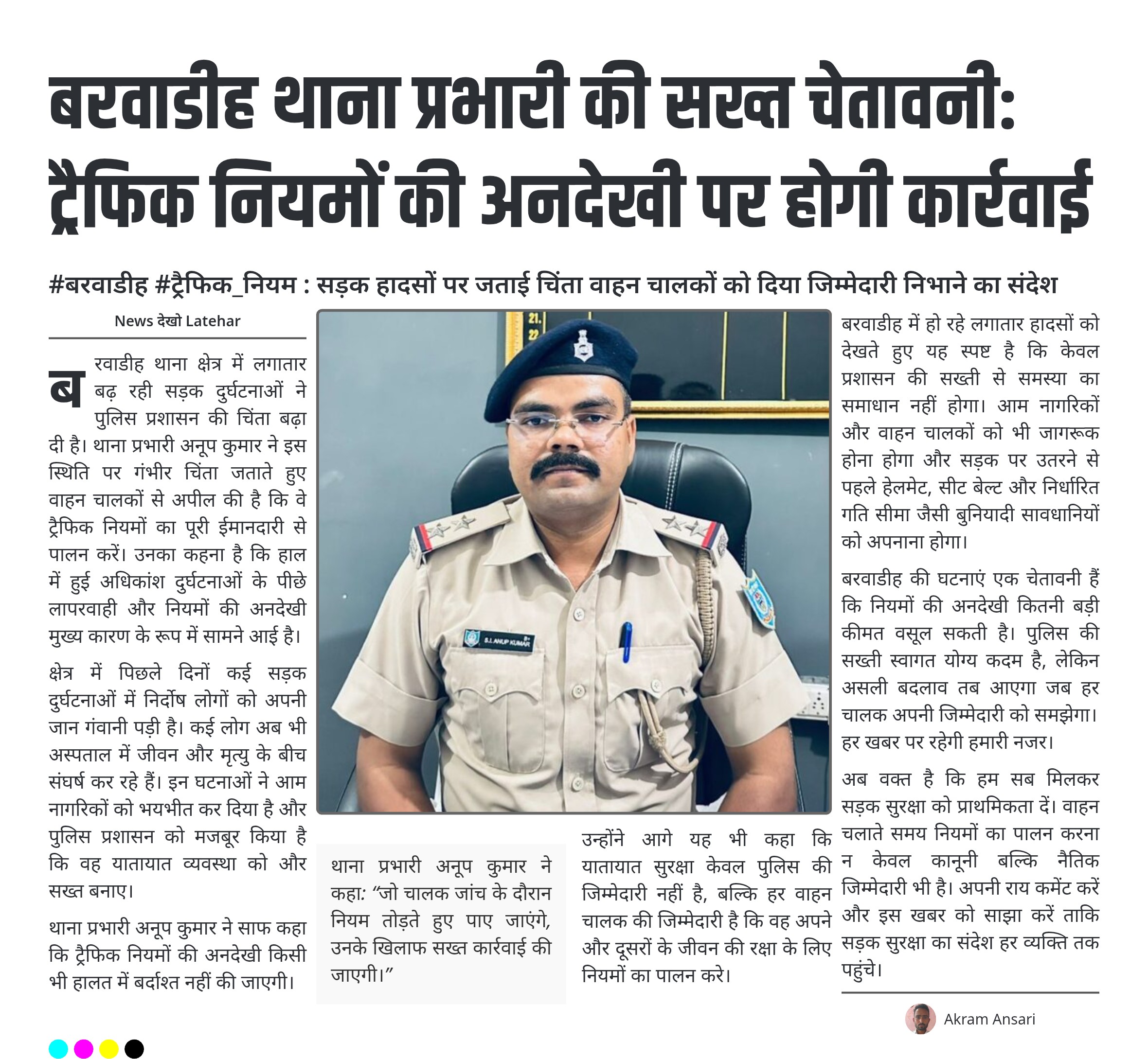 बरवाडीह की घटनाएं एक चेतावनी हैं कि नियमों की अनदेखी कितनी बड़ी कीमत वसूल सकती है। पुलिस की सख्ती स्वागत योग्य कदम है, लेकिन असली बदलाव तब आएगा जब हर चालक अपनी जिम्मेदारी को समझेगा।