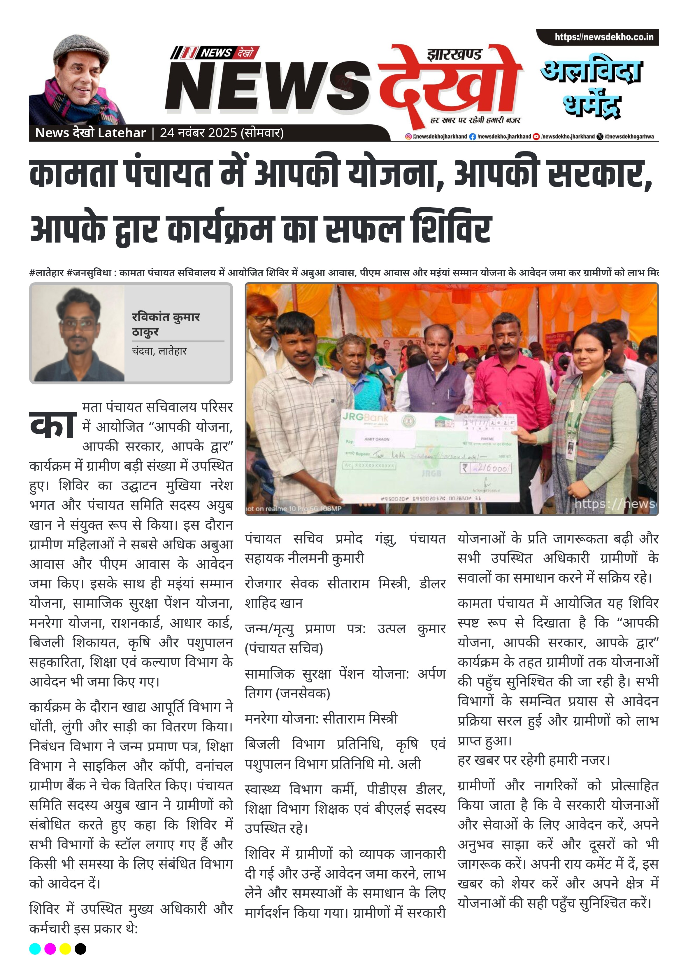 #लातेहार #जनसुविधा : कामता पंचायत सचिवालय में आयोजित शिविर में अबुआ आवास, पीएम आवास और मइंयां सम्मान योजना के आवेदन जमा कर ग्रामीणों को लाभ मिला