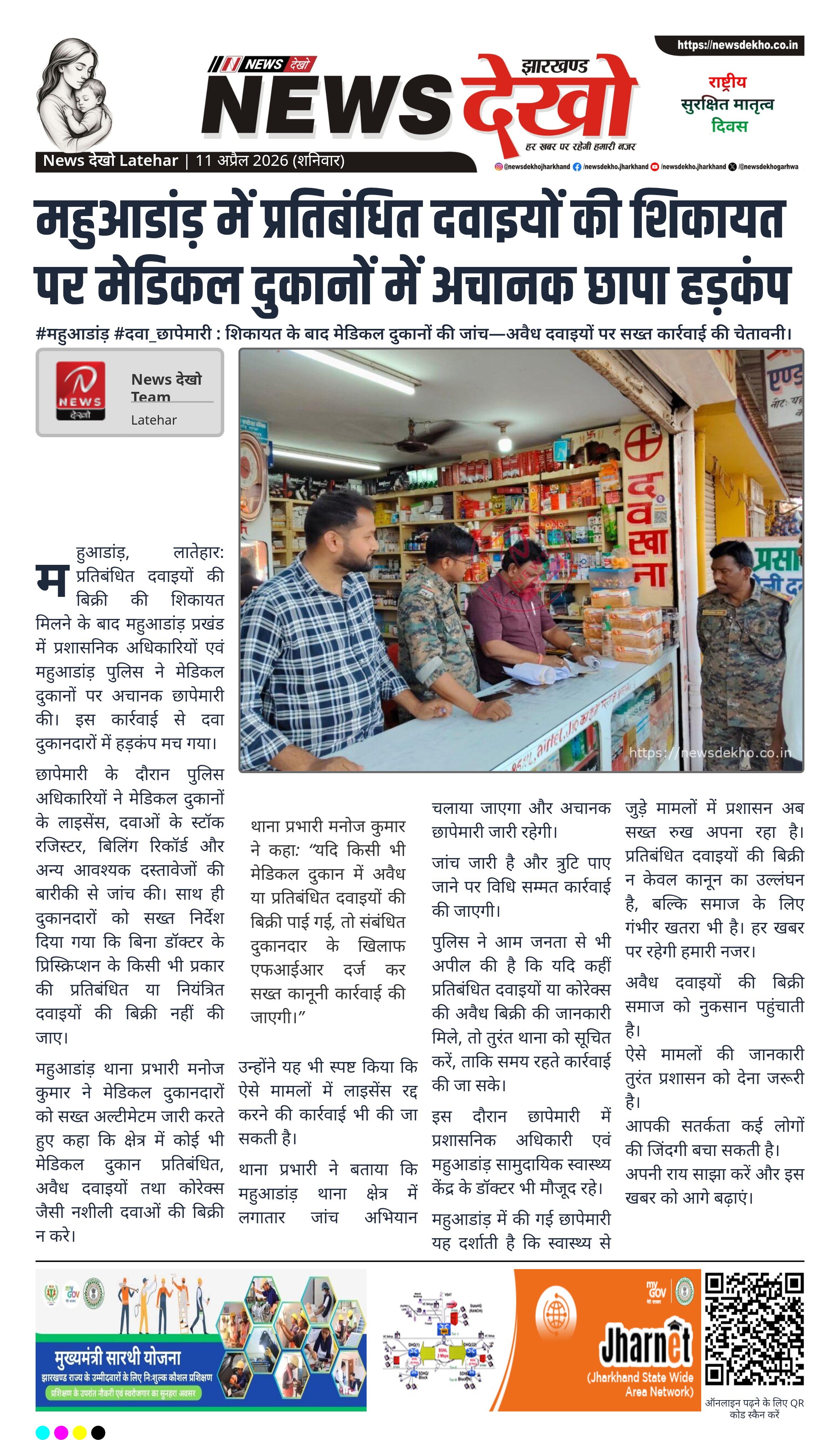 #महुआडांड़ #दवा_छापेमारी : शिकायत के बाद मेडिकल दुकानों की जांच—अवैध दवाइयों पर सख्त कार्रवाई की चेतावनी।