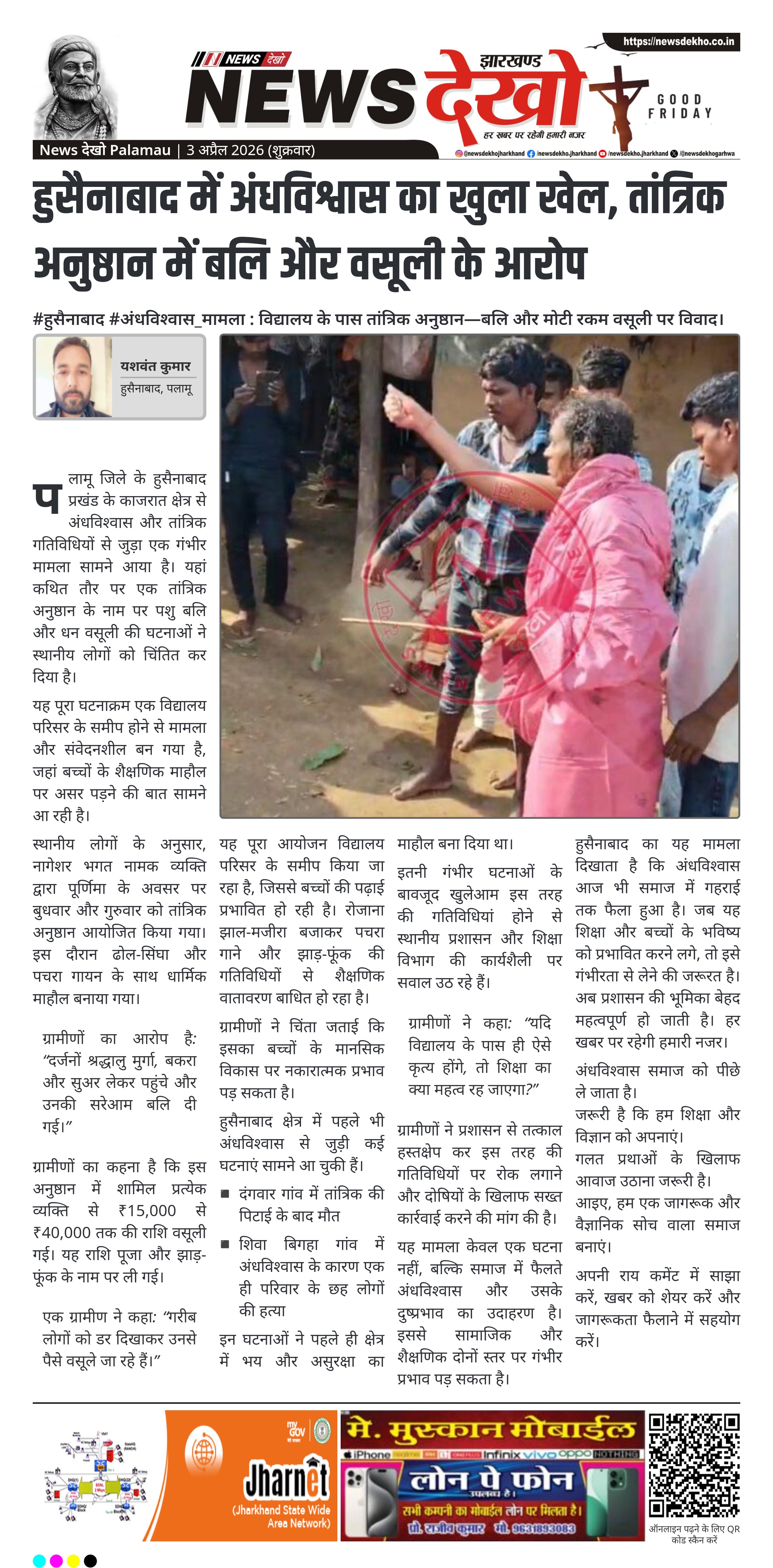 पलामू जिले के हुसैनाबाद प्रखंड के काजरात क्षेत्र से अंधविश्वास और तांत्रिक गतिविधियों से जुड़ा एक गंभीर मामला सामने आया है। यहां कथित तौर पर एक तांत्रिक अनुष्ठान के नाम पर पशु बलि और धन वसूली की घटनाओं ने स्थानीय लोगों को चिंतित कर दिया है।