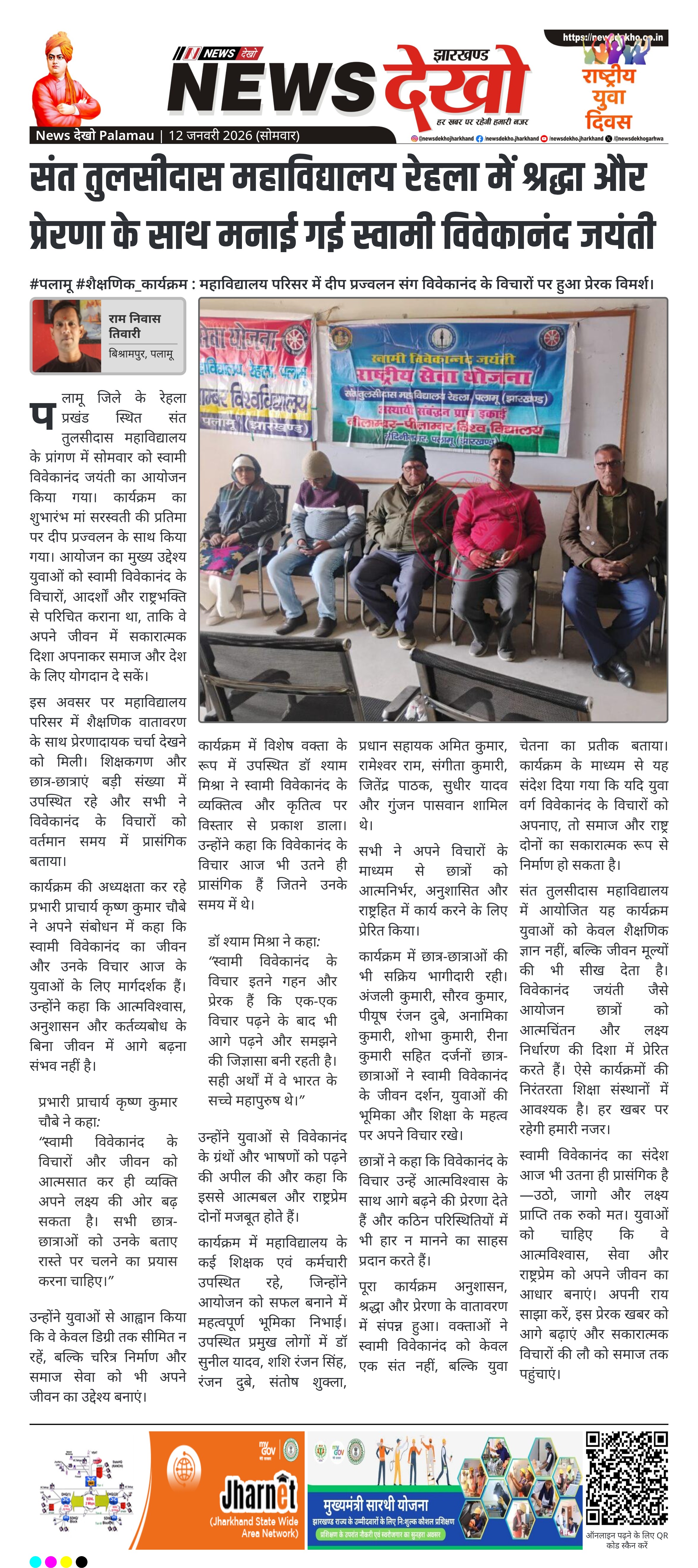 - संत तुलसीदास महाविद्यालय रेहला में आयोजित हुआ स्वामी विवेकानंद जयंती कार्यक्रम।