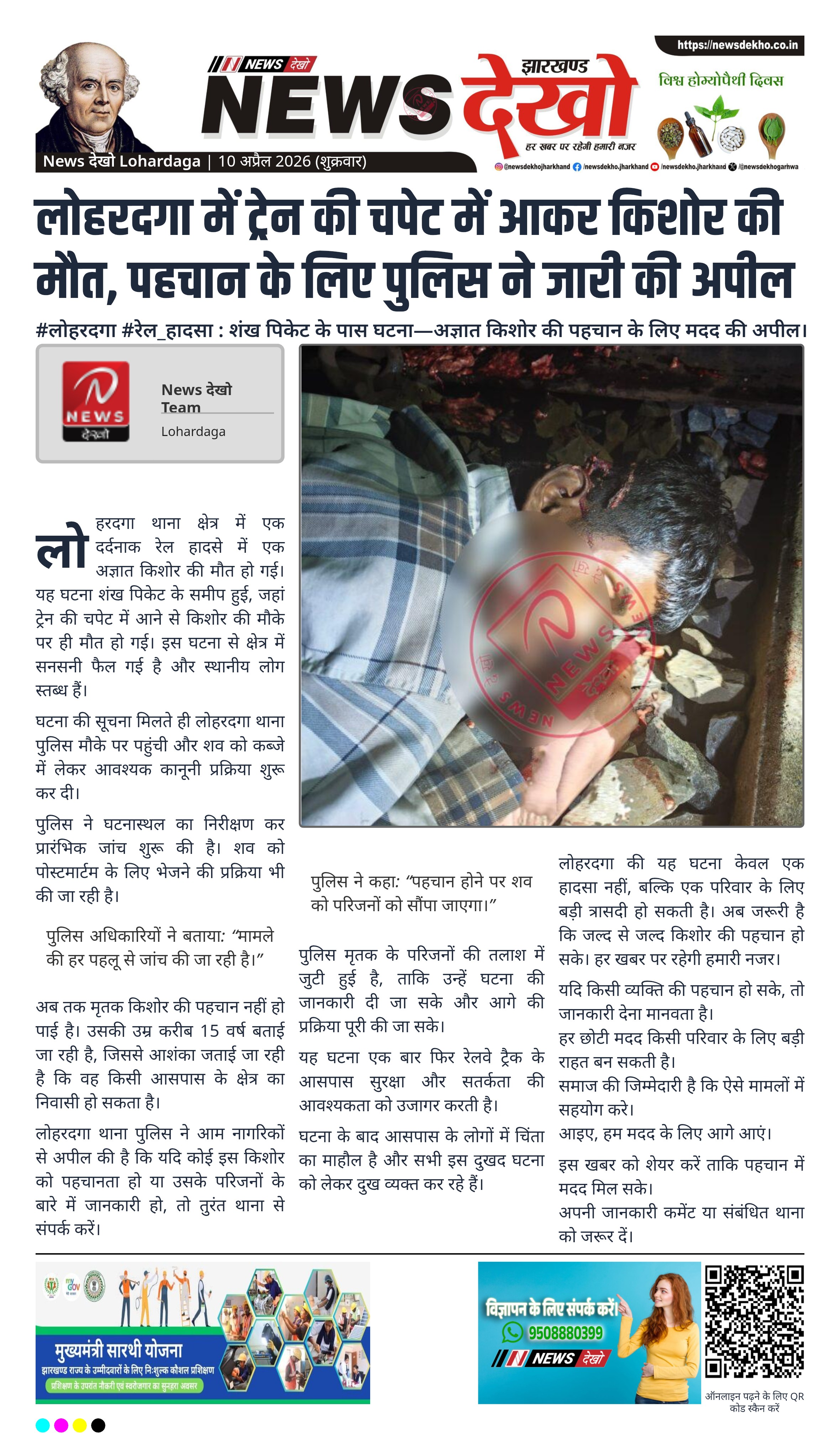 #लोहरदगा #रेल_हादसा : शंख पिकेट के पास घटना—अज्ञात किशोर की पहचान के लिए मदद की अपील।