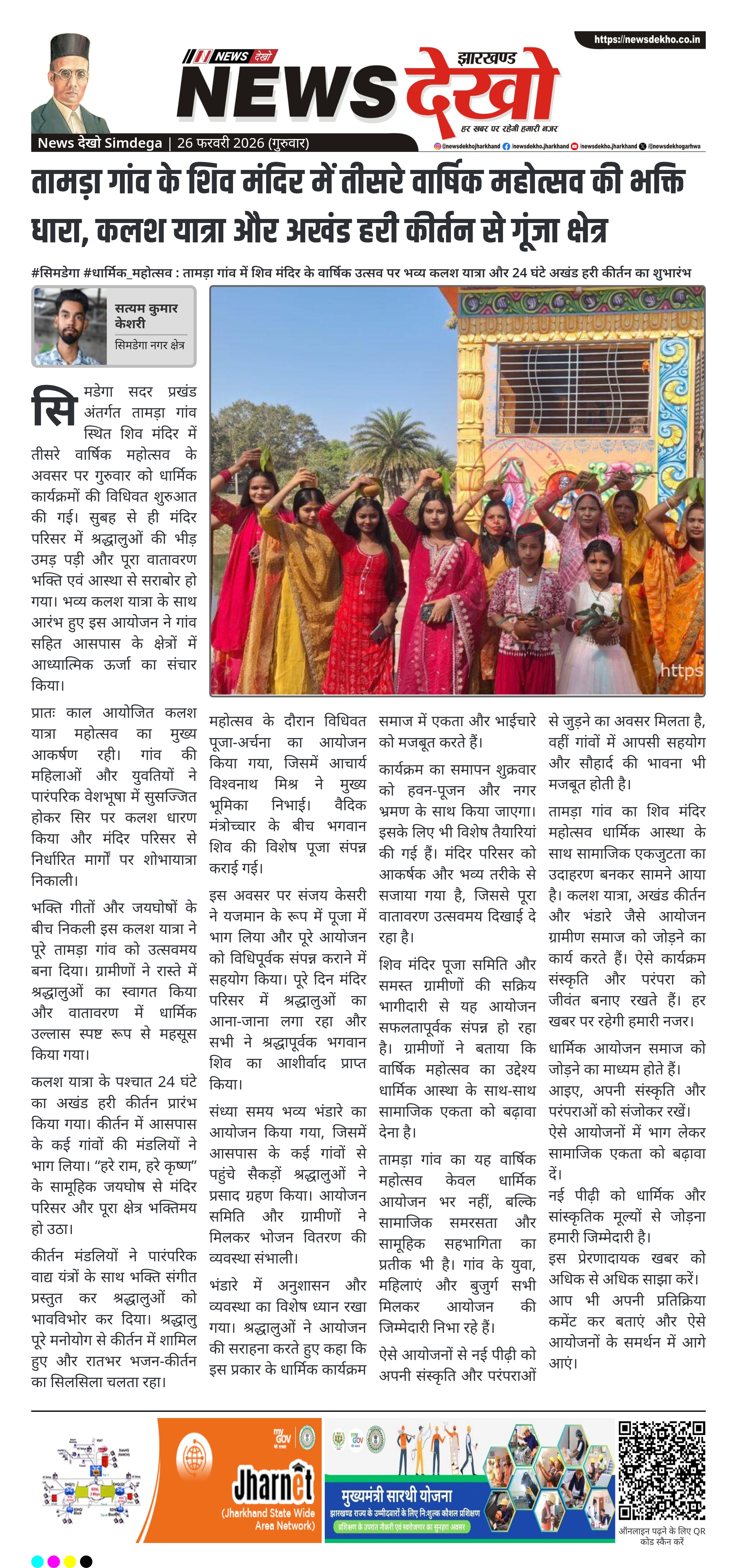 - तामड़ा गांव, सिमडेगा सदर प्रखंड में शिव मंदिर का तीसरा वार्षिक महोत्सव प्रारंभ।