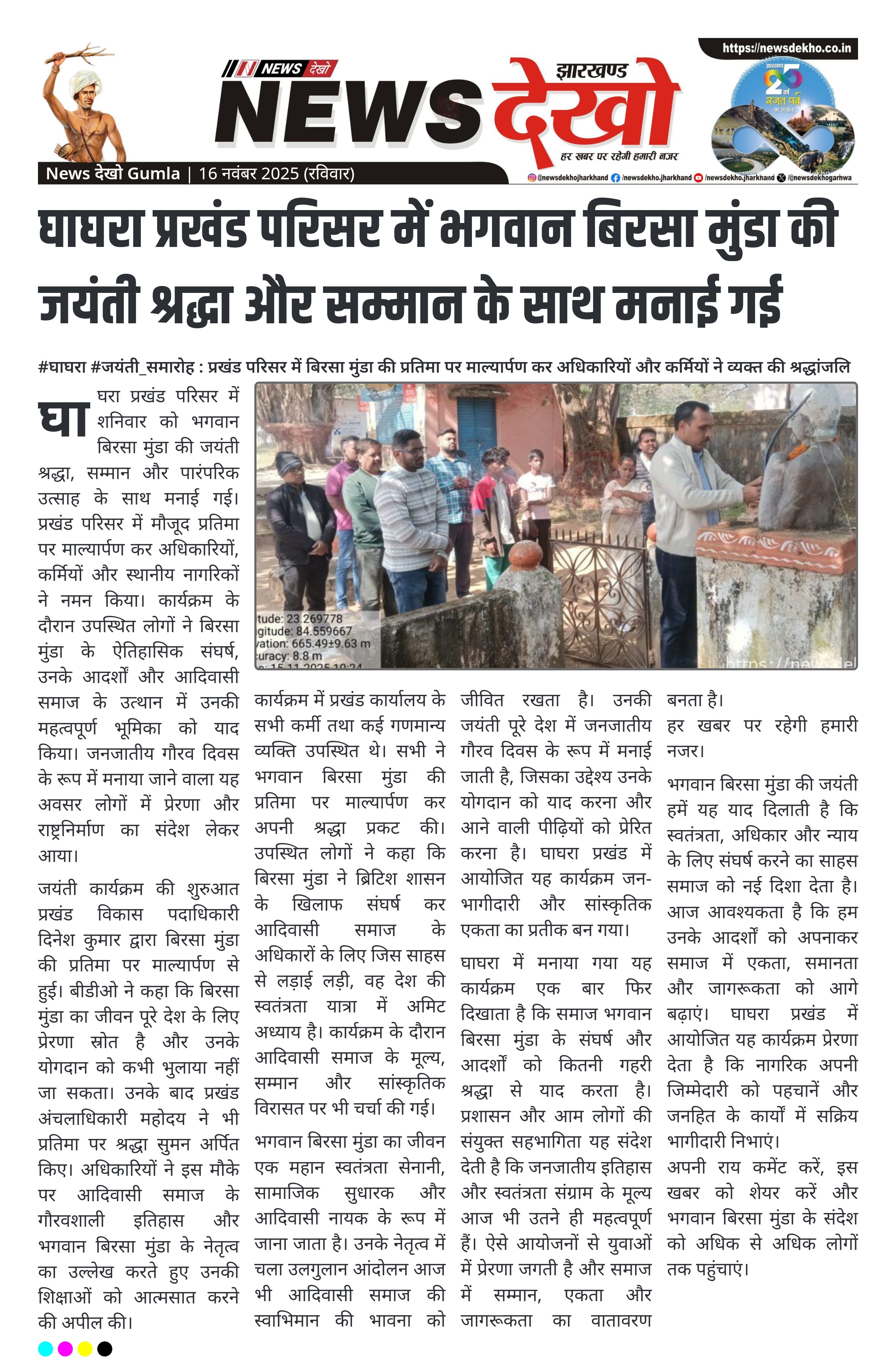 - बिरसा मुंडा के संघर्ष, बलिदान और आदर्शों को याद किया गया।