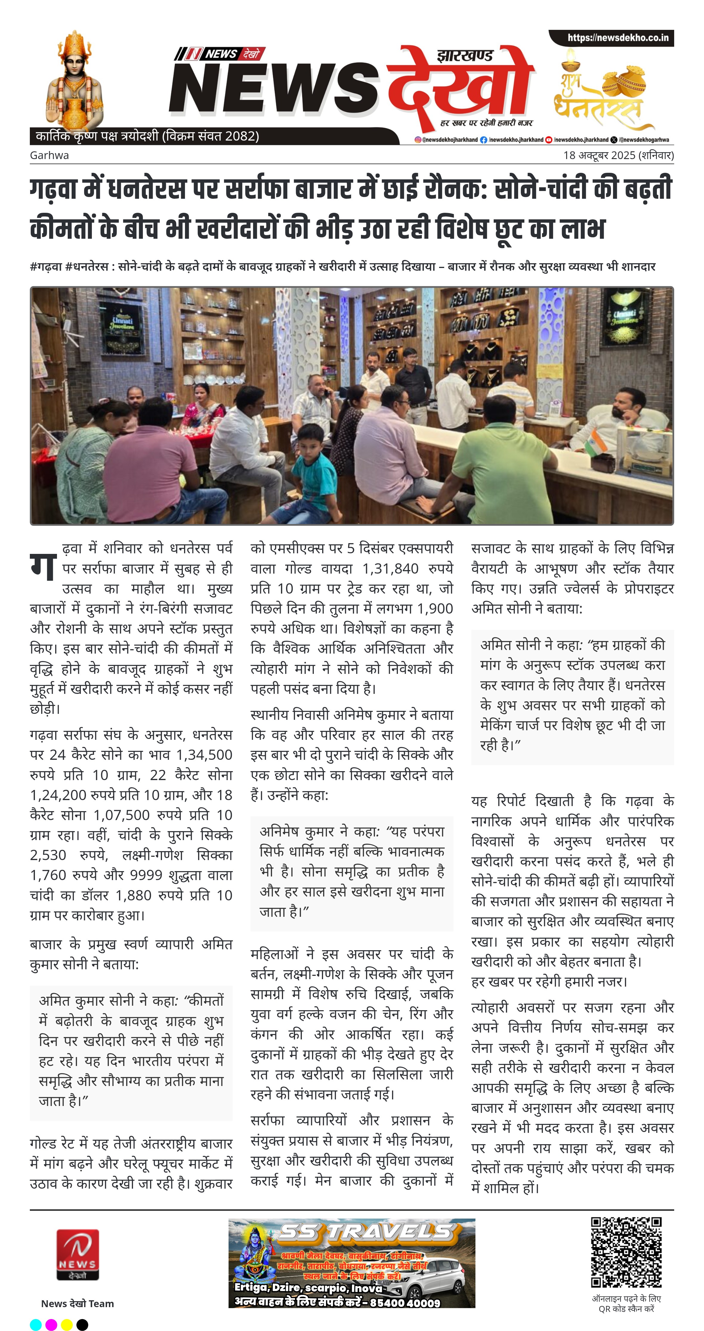 #गढ़वा #धनतेरस : सोने-चांदी के बढ़ते दामों के बावजूद ग्राहकों ने खरीदारी में उत्साह दिखाया – बाजार में रौनक और सुरक्षा व्यवस्था भी शानदार