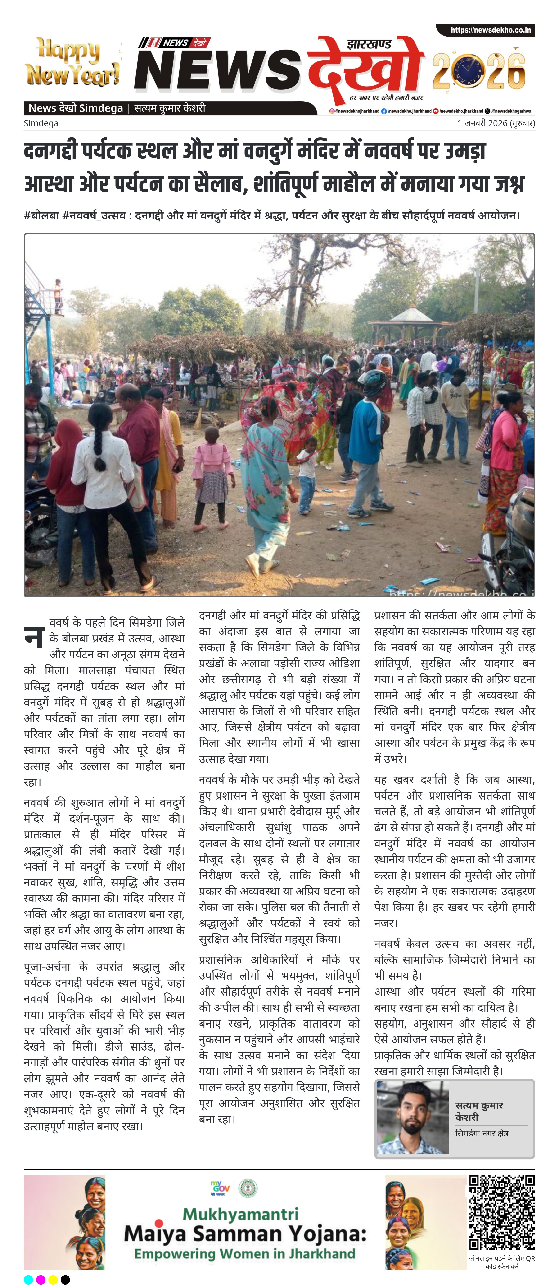 प्रशासन की सतर्कता और आम लोगों के सहयोग का सकारात्मक परिणाम यह रहा कि नववर्ष का यह आयोजन पूरी तरह शांतिपूर्ण, सुरक्षित और यादगार बन गया। न तो किसी प्रकार की अप्रिय घटना सामने आई और न ही अव्यवस्था की स्थिति बनी। दनगद्दी पर्यटक स्थल और मां वनदुर्गे मंदिर एक बार फिर क्षेत्रीय आस्था और पर्यटन के प्रमुख केंद्र के रूप में उभरे।