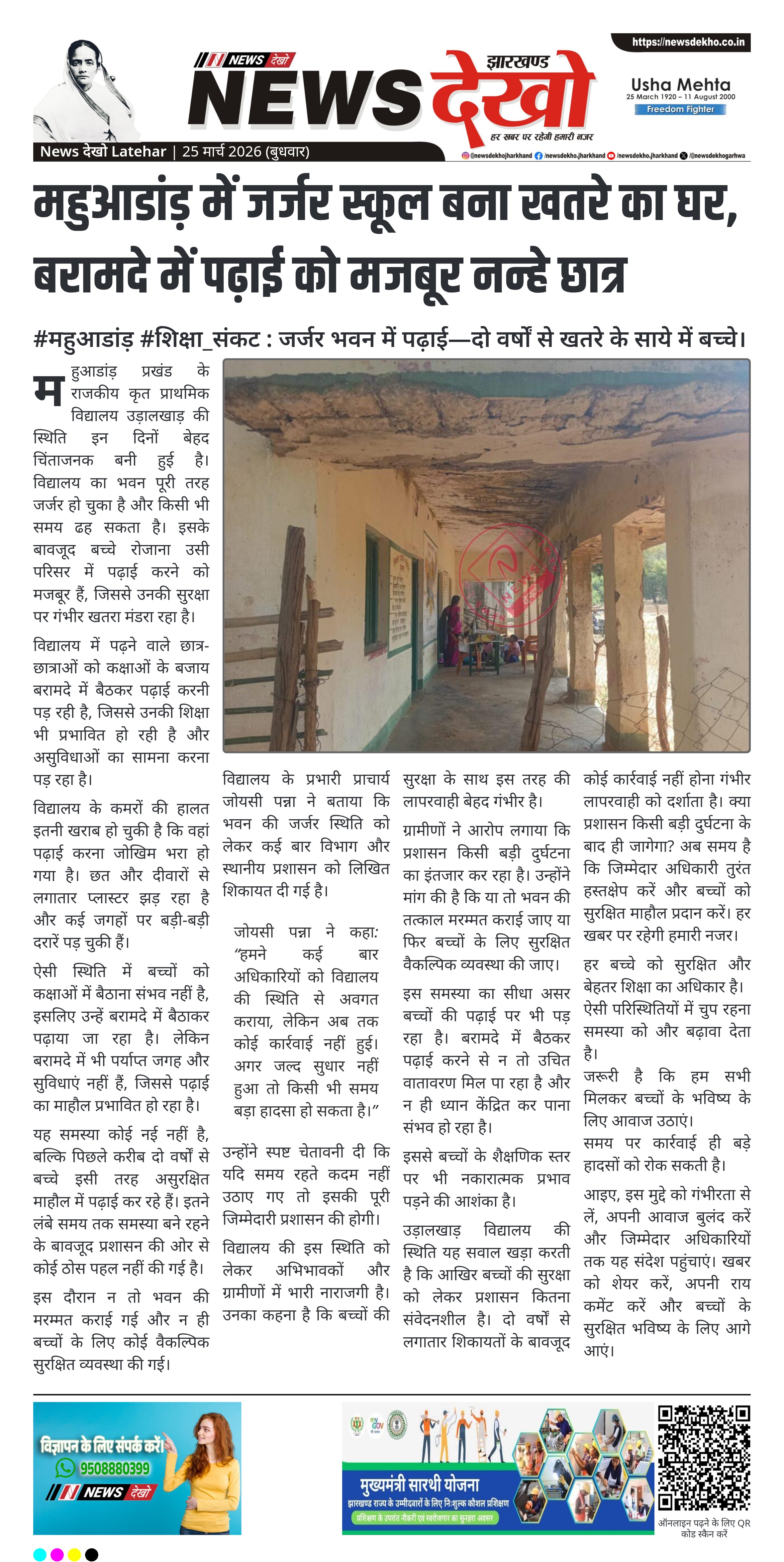 उड़ालखाड़ विद्यालय की स्थिति यह सवाल खड़ा करती है कि आखिर बच्चों की सुरक्षा को लेकर प्रशासन कितना संवेदनशील है। दो वर्षों से लगातार शिकायतों के बावजूद कोई कार्रवाई नहीं होना गंभीर लापरवाही को दर्शाता है। क्या प्रशासन किसी बड़ी दुर्घटना के बाद ही जागेगा? अब समय है कि जिम्मेदार अधिकारी तुरंत हस्तक्षेप करें और बच्चों को सुरक्षित माहौल प्रदान करें। हर खबर पर रहेगी हमारी नजर।
