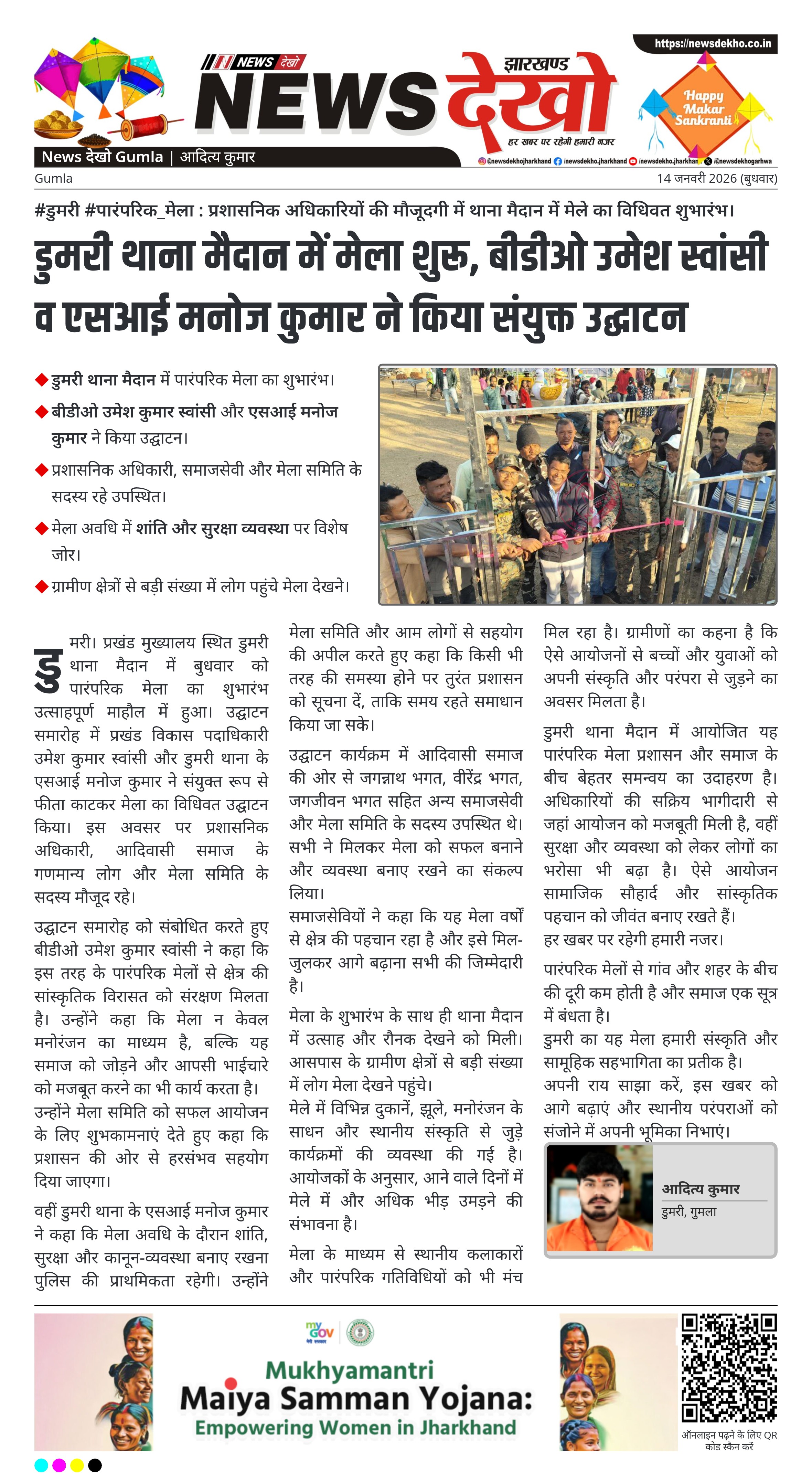 डुमरी थाना मैदान में आयोजित यह पारंपरिक मेला प्रशासन और समाज के बीच बेहतर समन्वय का उदाहरण है। अधिकारियों की सक्रिय भागीदारी से जहां आयोजन को मजबूती मिली है, वहीं सुरक्षा और व्यवस्था को लेकर लोगों का भरोसा भी बढ़ा है। ऐसे आयोजन सामाजिक सौहार्द और सांस्कृतिक पहचान को जीवंत बनाए रखते हैं।