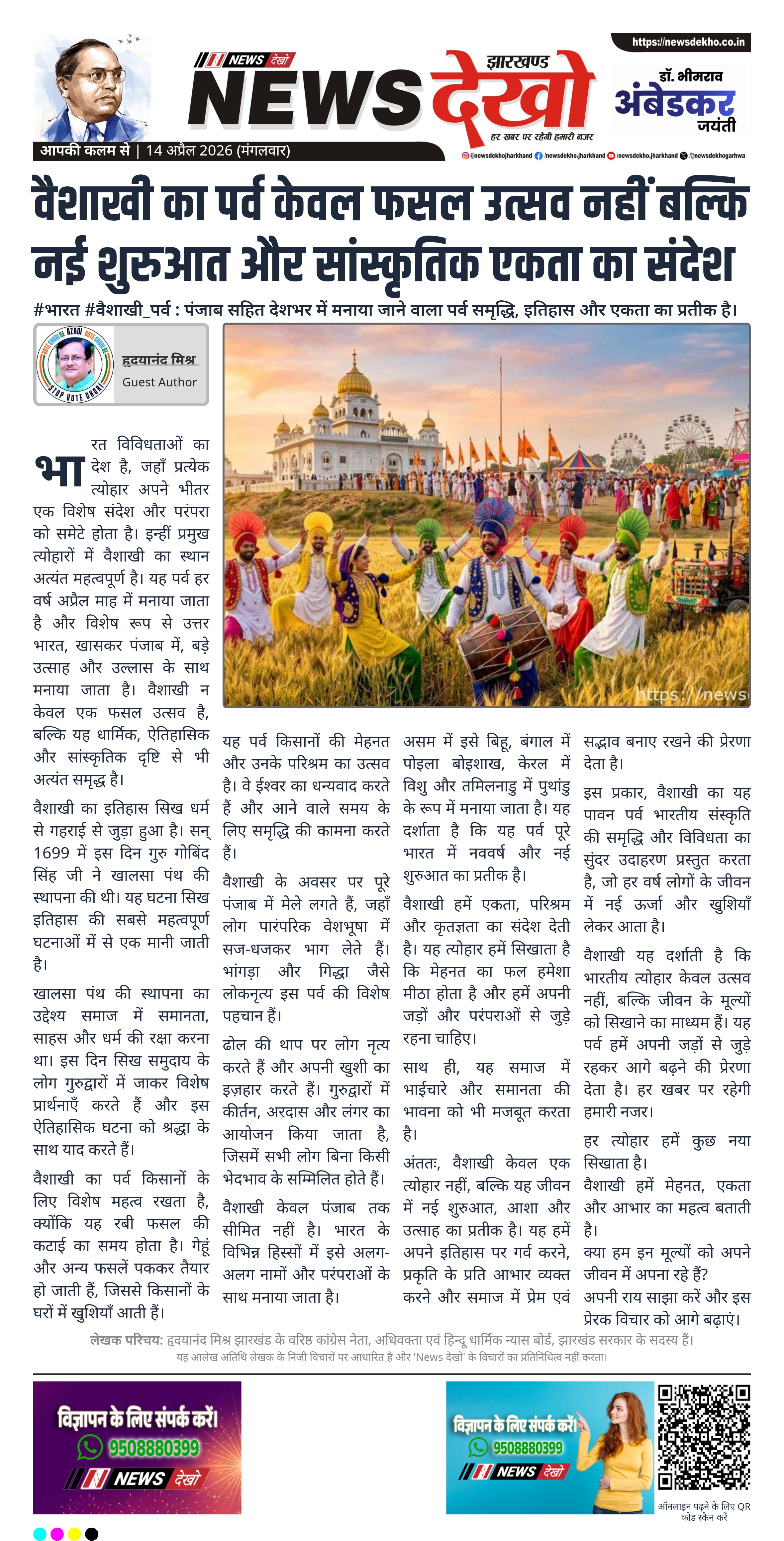 वैशाखी यह दर्शाती है कि भारतीय त्योहार केवल उत्सव नहीं, बल्कि जीवन के मूल्यों को सिखाने का माध्यम हैं। यह पर्व हमें अपनी जड़ों से जुड़े रहकर आगे बढ़ने की प्रेरणा देता है। हर खबर पर रहेगी हमारी नजर।