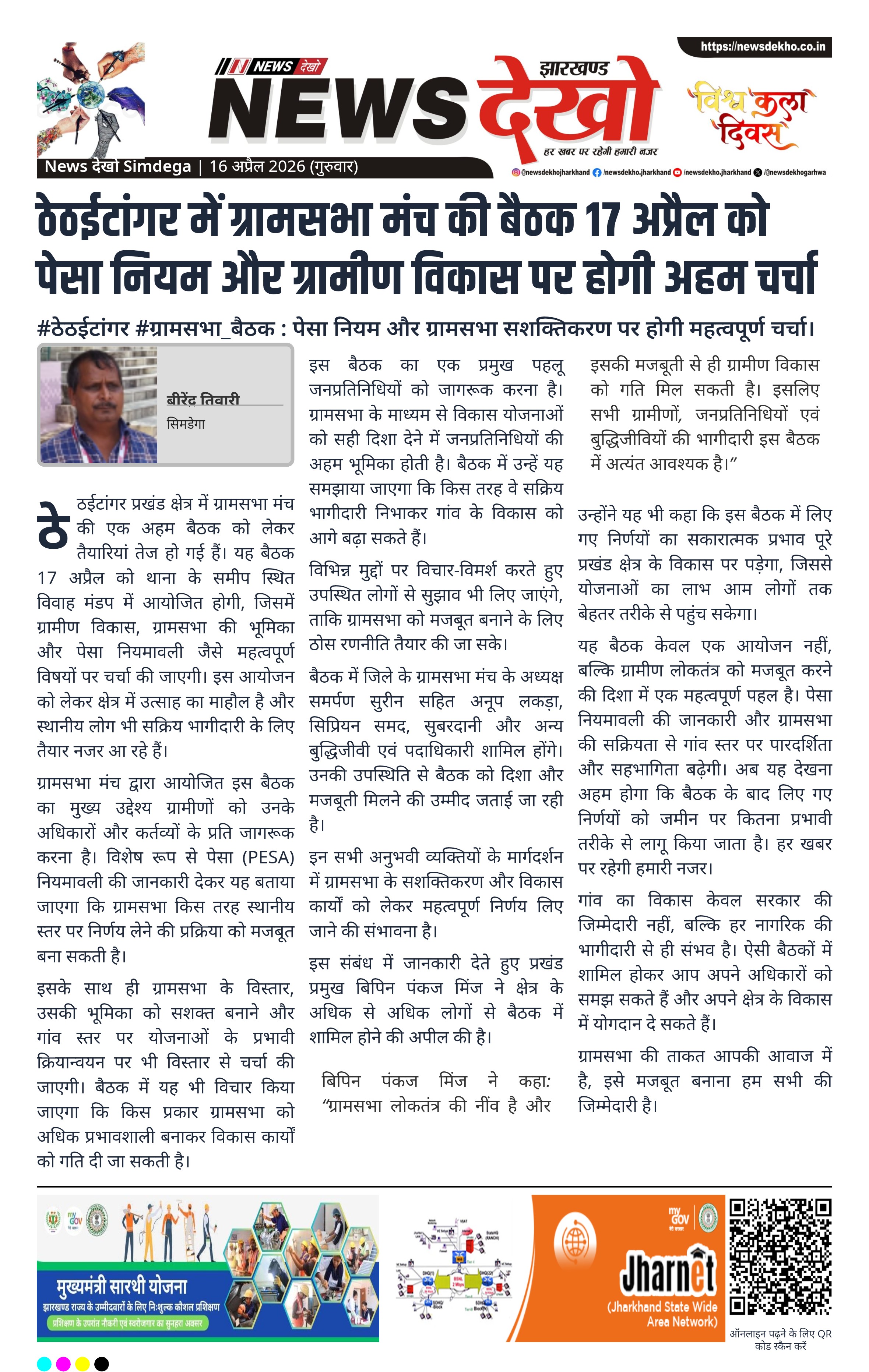 बिपिन पंकज मिंज ने कहा: “ग्रामसभा लोकतंत्र की नींव है और इसकी मजबूती से ही ग्रामीण विकास को गति मिल सकती है। इसलिए सभी ग्रामीणों, जनप्रतिनिधियों एवं बुद्धिजीवियों की भागीदारी इस बैठक में अत्यंत आवश्यक है।”