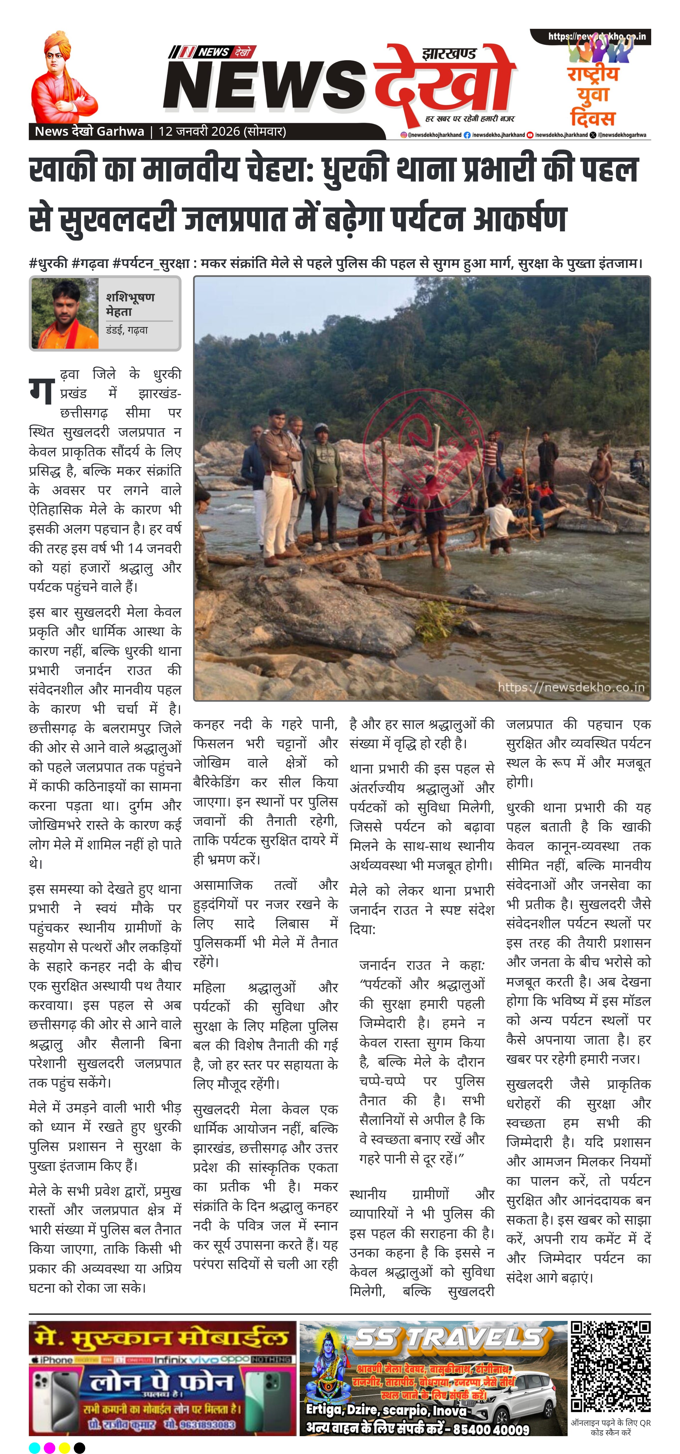 गढ़वा जिले के धुरकी प्रखंड में स्थित प्रसिद्ध सुखलदरी जलप्रपात मकर संक्रांति के अवसर पर 14 जनवरी को लगने वाले वार्षिक मेले के लिए पूरी तरह तैयार है। इस बार मेले की खास पहचान धुरकी थाना प्रभारी की मानवीय पहल बनी है, जिन्होंने छत्तीसगढ़ से आने वाले श्रद्धालुओं और पर्यटकों के लिए दुर्गम रास्ते को सुगम बनाया। साथ ही मेले को लेकर सुरक्षा के व्यापक इंतजाम किए गए हैं। यह पहल अंतर्राज्यीय पर्यटन और श्रद्धालुओं की सुविधा की दृष्टि से महत्वपूर्ण मानी जा रही है।