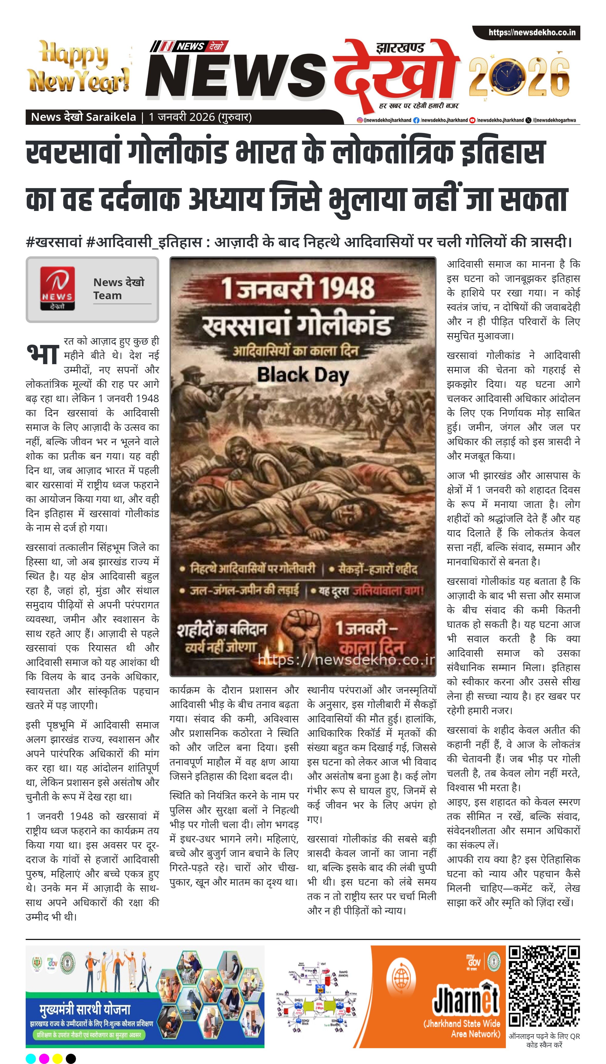 - 1 जनवरी 1948 को खरसावां में हुआ था ऐतिहासिक गोलीकांड।