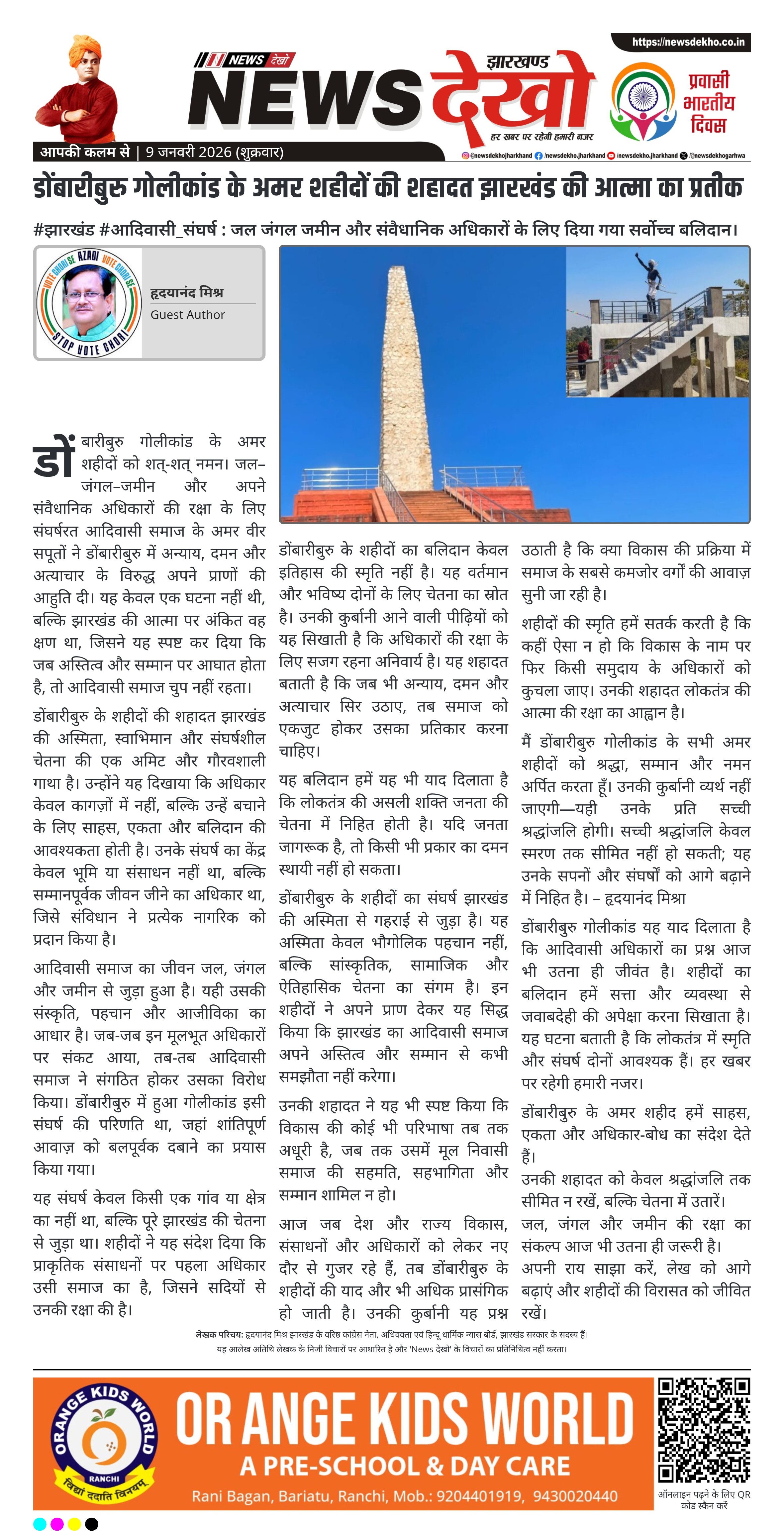 डोंबारीबुरु गोलीकांड यह याद दिलाता है कि आदिवासी अधिकारों का प्रश्न आज भी उतना ही जीवंत है। शहीदों का बलिदान हमें सत्ता और व्यवस्था से जवाबदेही की अपेक्षा करना सिखाता है। यह घटना बताती है कि लोकतंत्र में स्मृति और संघर्ष दोनों आवश्यक हैं। हर खबर पर रहेगी हमारी नजर।