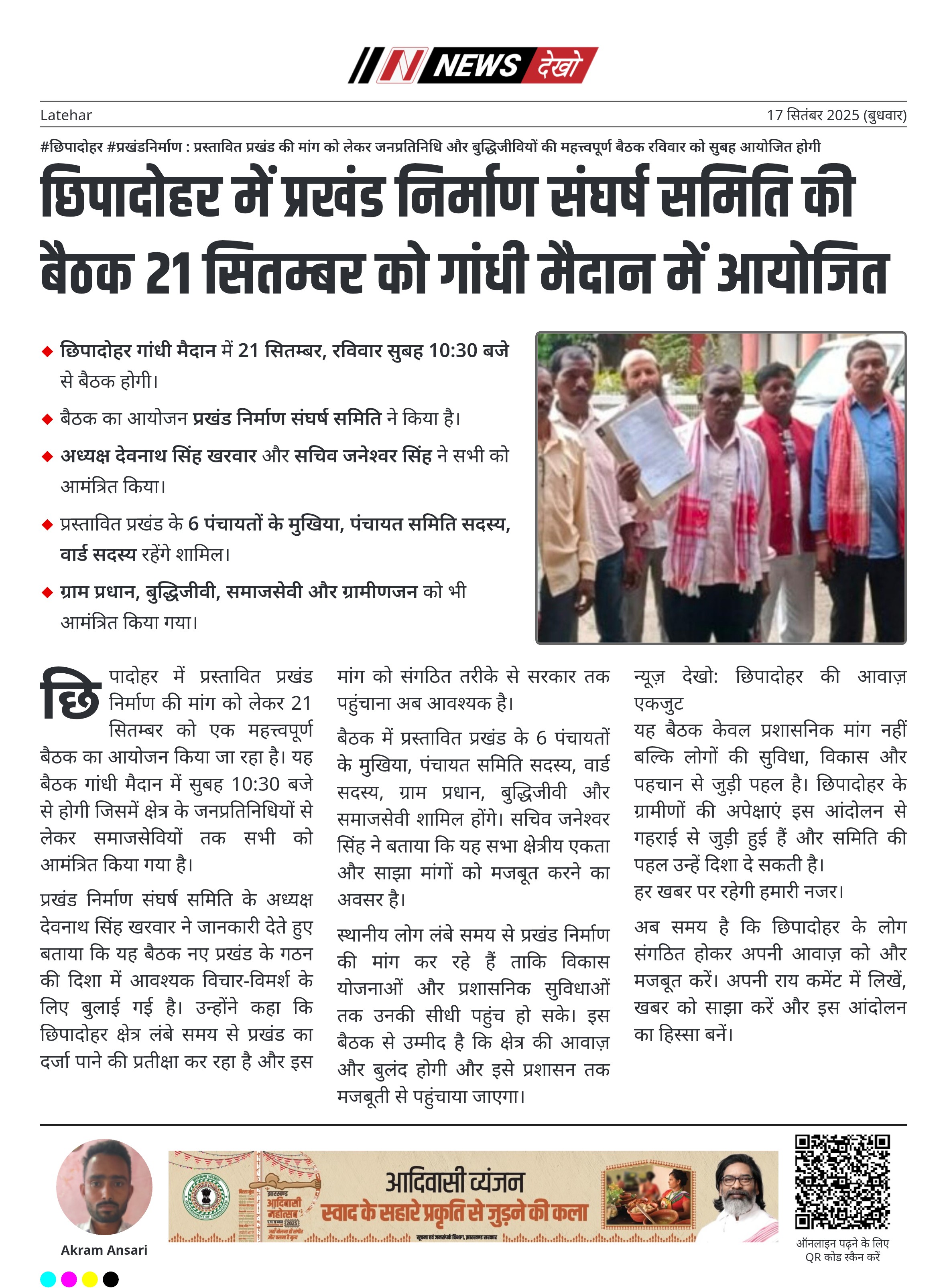 - छिपादोहर गांधी मैदान में 21 सितम्बर, रविवार सुबह 10:30 बजे से बैठक होगी।