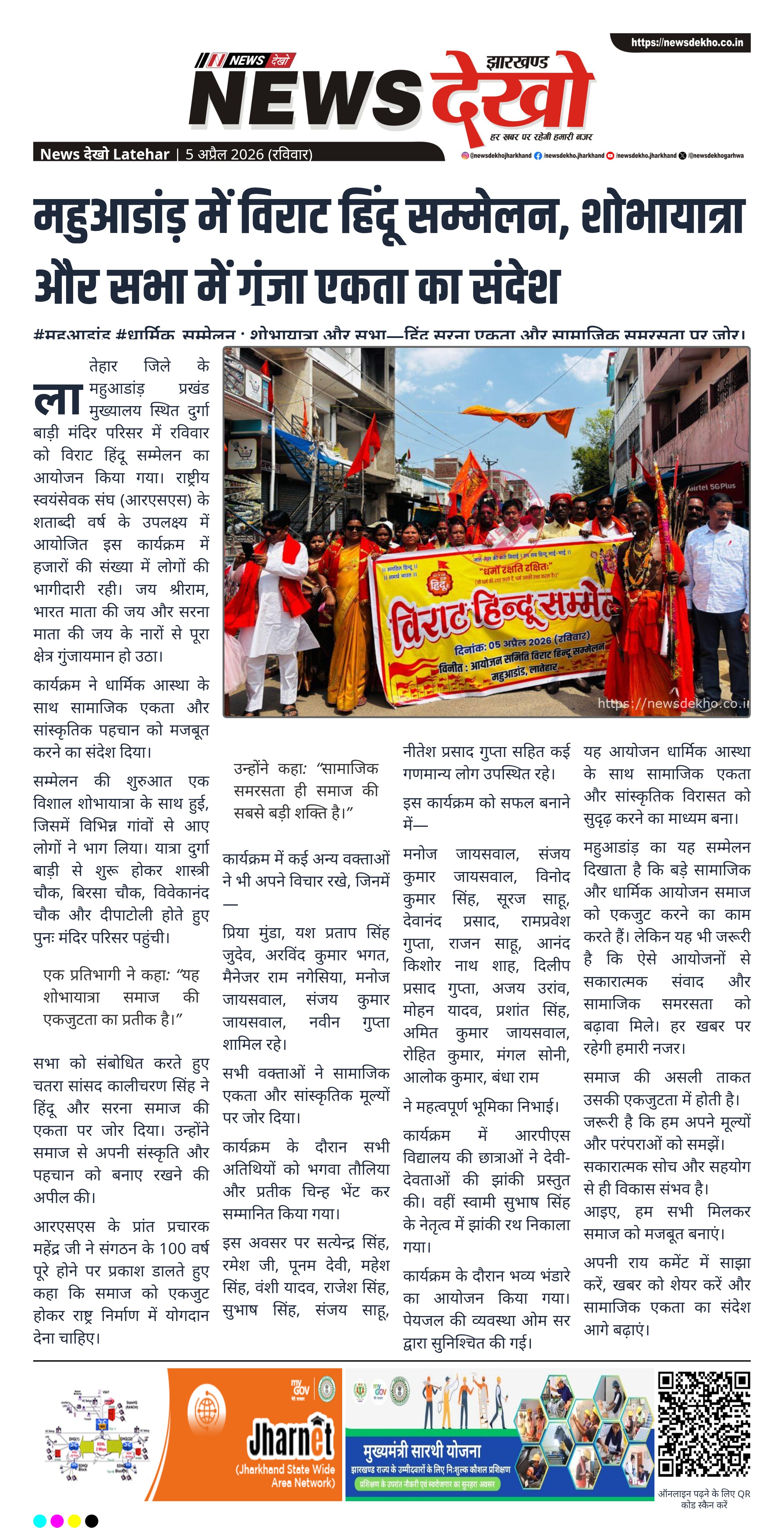 #महुआडांड़ #धार्मिक_सम्मेलन : शोभायात्रा और सभा—हिंदू सरना एकता और सामाजिक समरसता पर जोर।