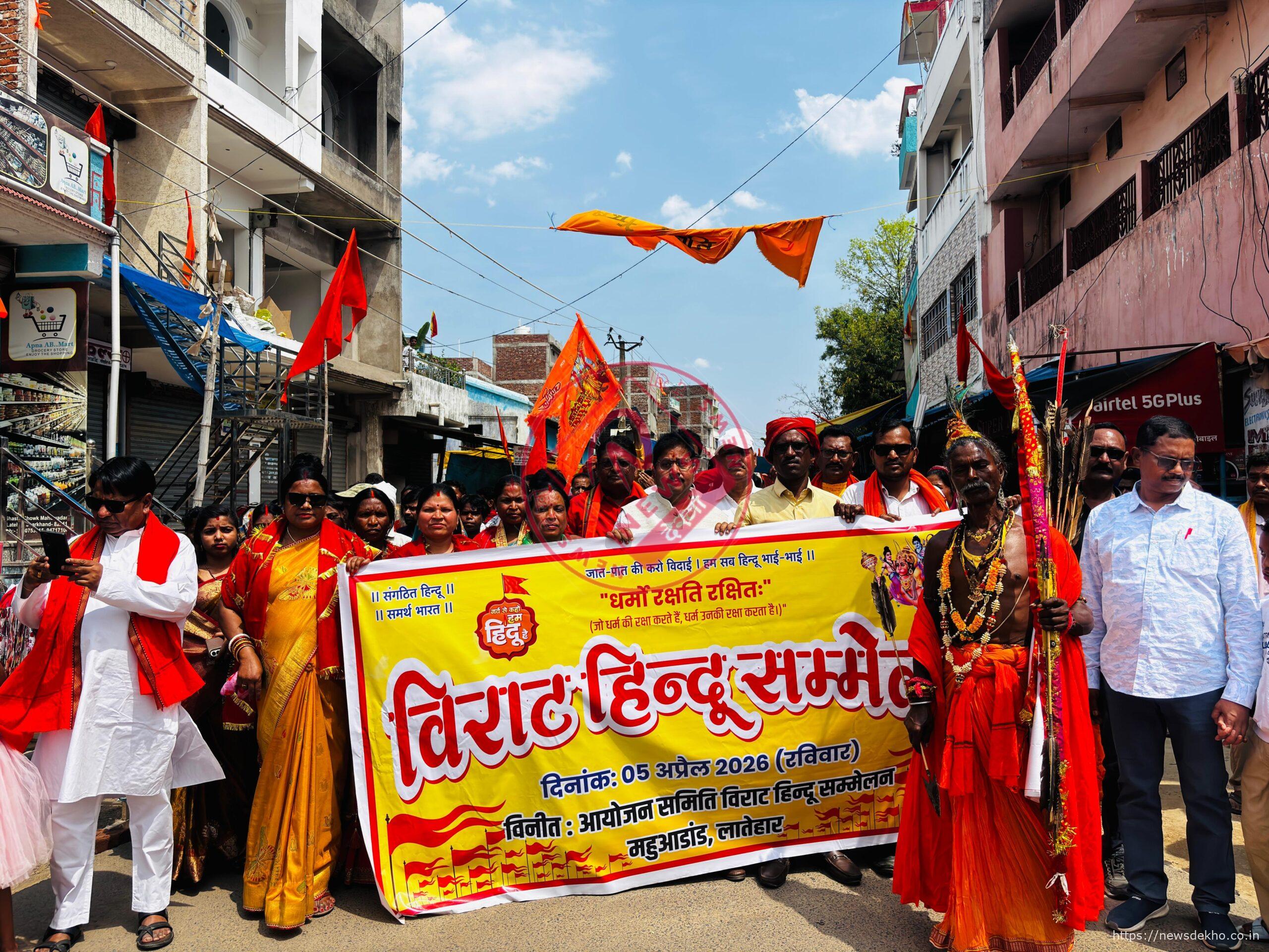 लातेहार जिले के महुआडांड़ प्रखंड मुख्यालय स्थित दुर्गा बाड़ी मंदिर परिसर में रविवार को विराट हिंदू सम्मेलन का आयोजन किया गया। राष्ट्रीय स्वयंसेवक संघ (आरएसएस) के शताब्दी वर्ष के उपलक्ष्य में आयोजित इस कार्यक्रम में हजारों की संख्या में लोगों की भागीदारी रही। जय श्रीराम, भारत माता की जय और सरना माता की जय के नारों से पूरा क्षेत्र गुंजायमान हो उठा।