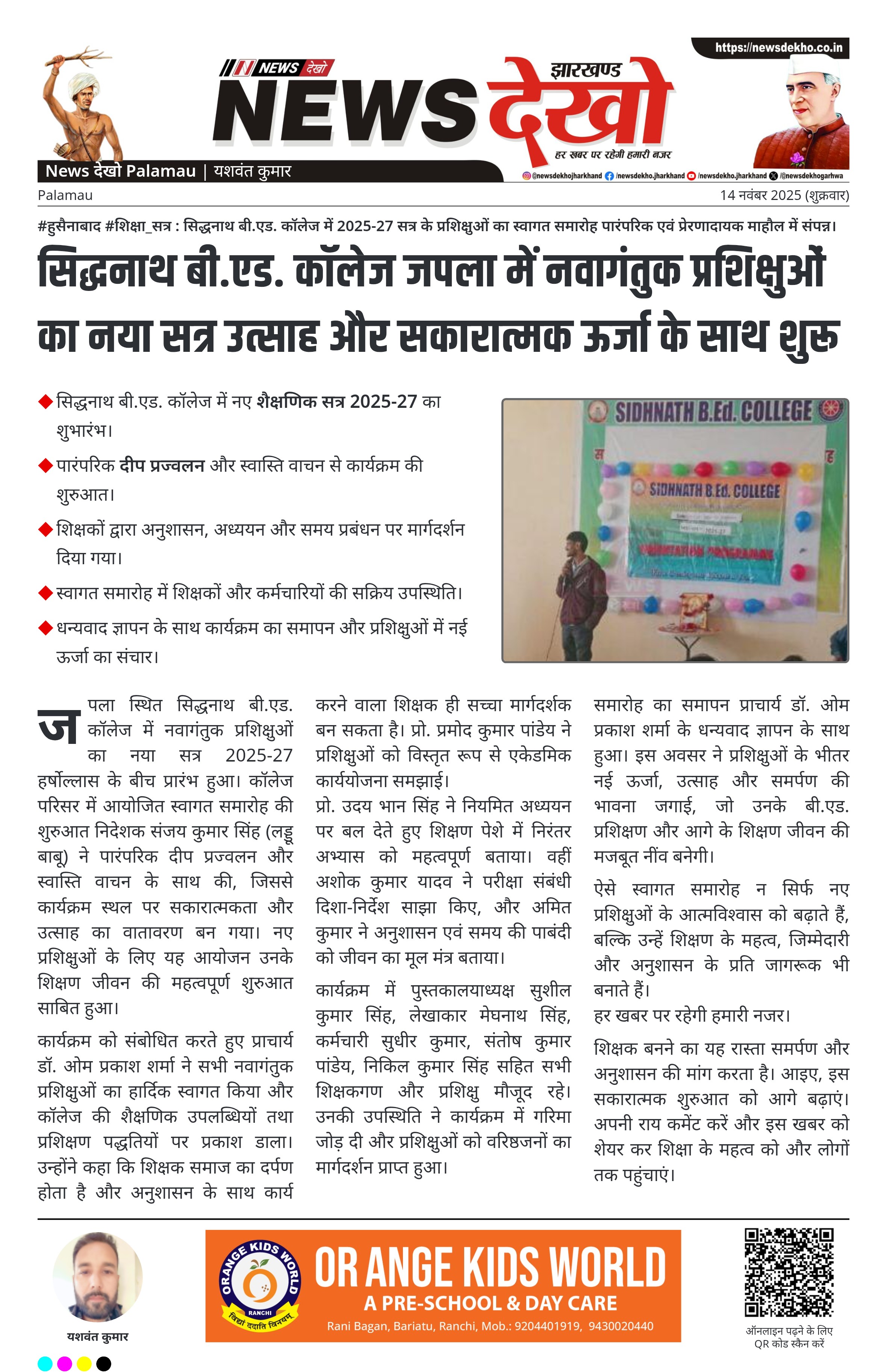 • सिद्धनाथ बी.एड. कॉलेज में नए शैक्षणिक सत्र 2025-27 का शुभारंभ।