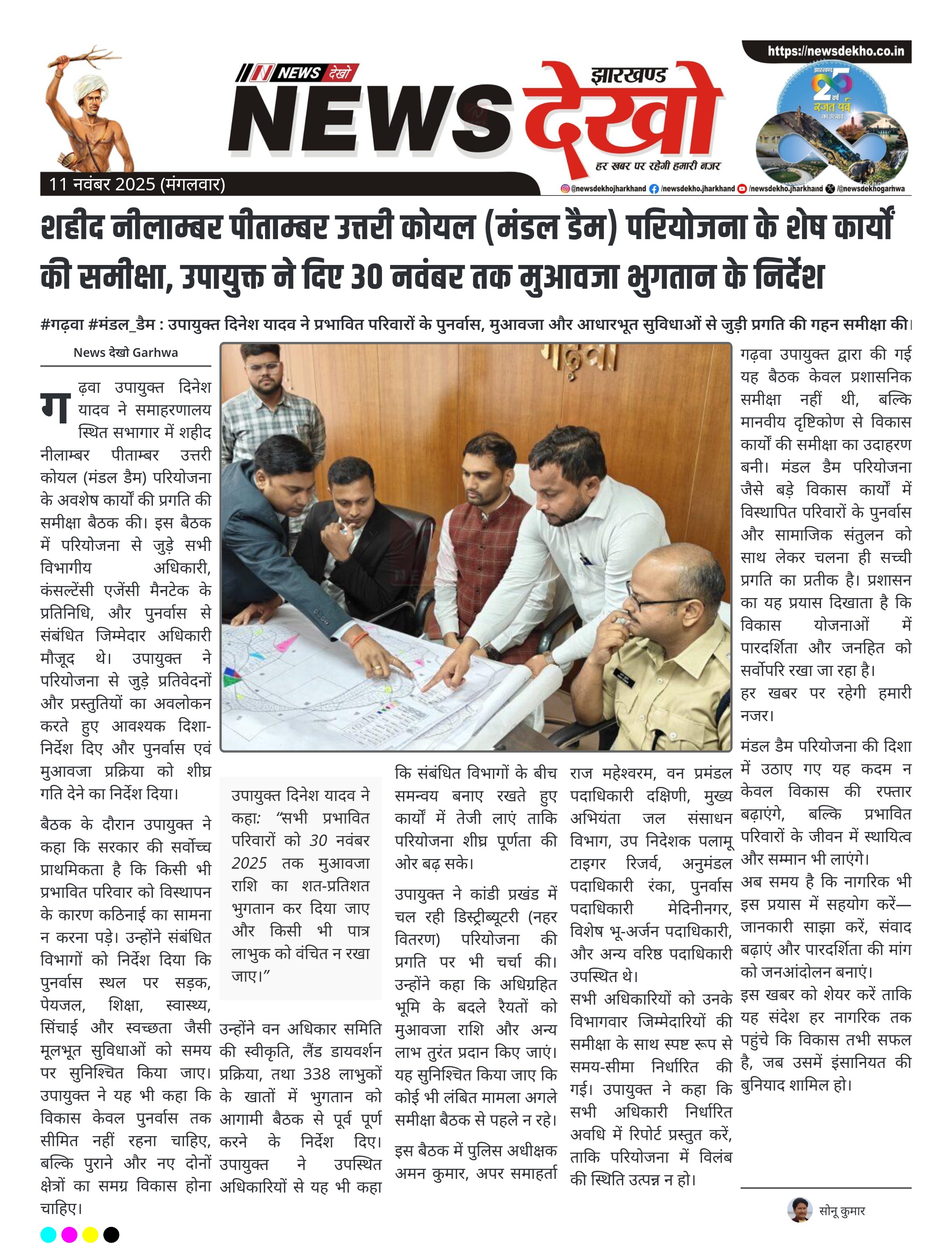 उपायुक्त दिनेश यादव ने कहा: “सभी प्रभावित परिवारों को 30 नवंबर 2025 तक मुआवजा राशि का शत-प्रतिशत भुगतान कर दिया जाए और किसी भी पात्र लाभुक को वंचित न रखा जाए।”