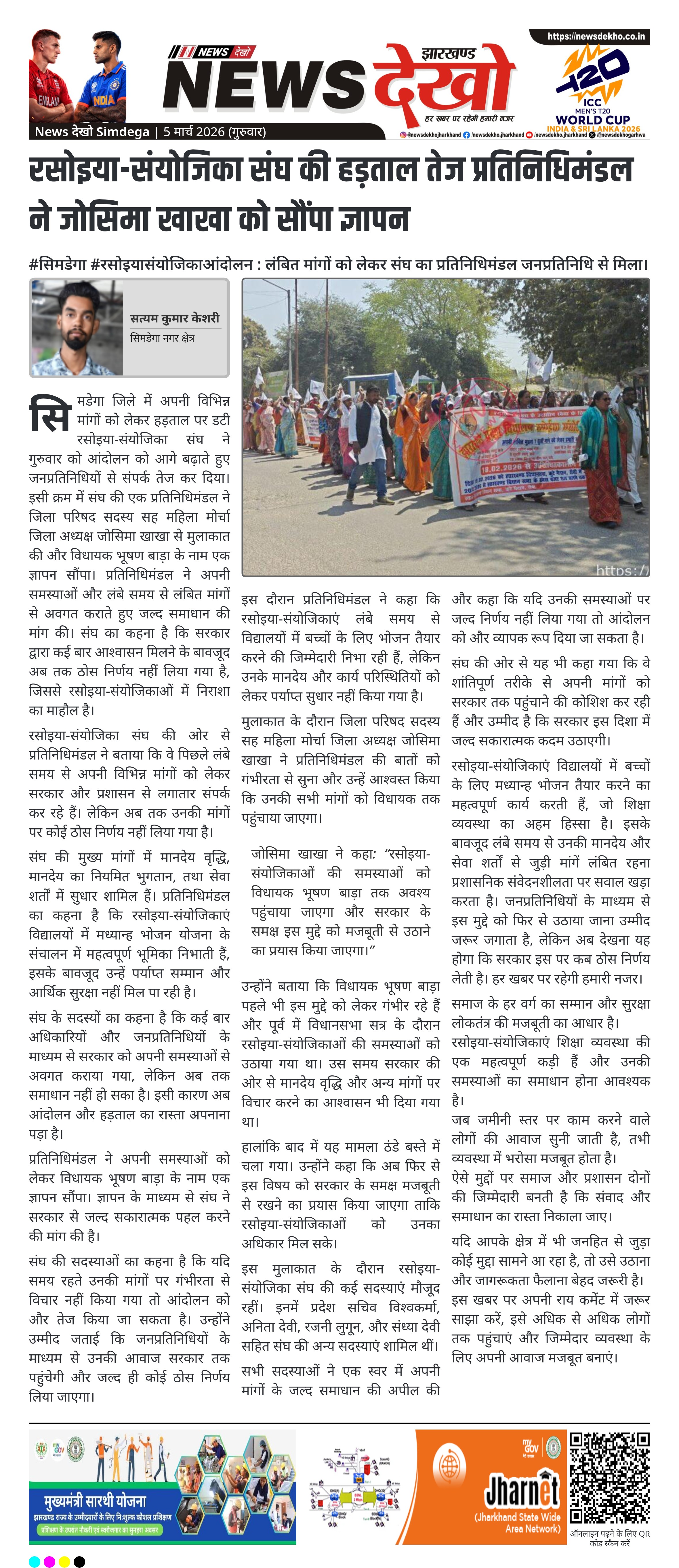 - सिमडेगा में हड़ताल पर डटी रसोइया-संयोजिका संघ की प्रतिनिधिमंडल ने की मुलाकात।