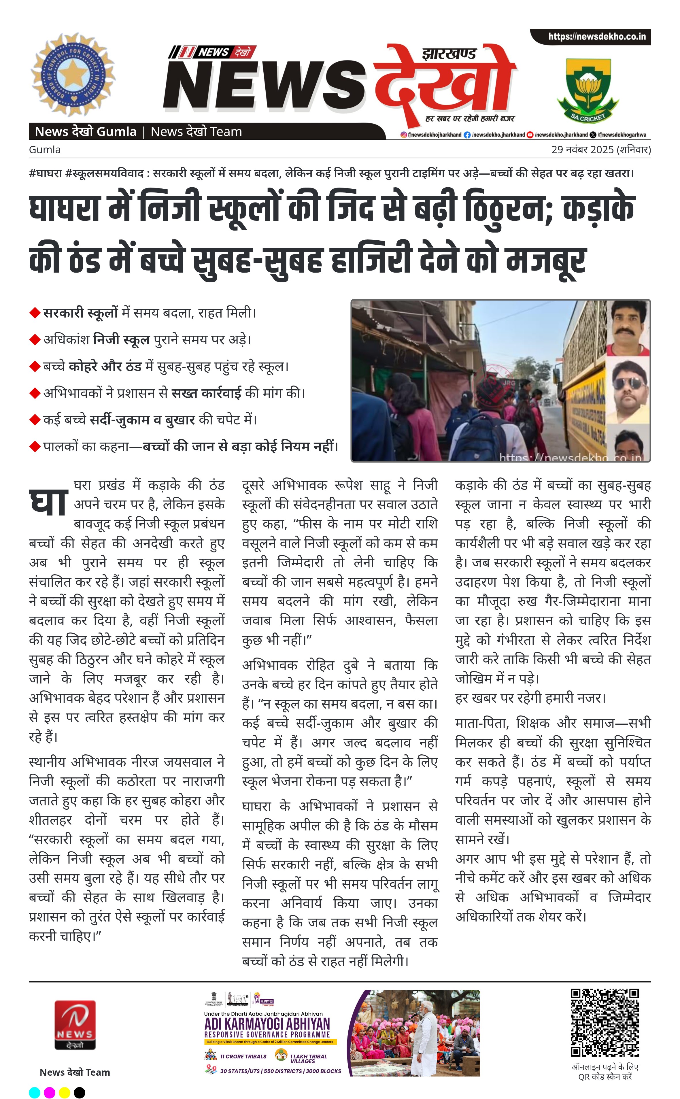 घाघरा में निजी स्कूलों की जिद से बढ़ी ठिठुरन; कड़ाके की ठंड में बच्चे सुबह-सुबह हाजिरी देने को मजबूर