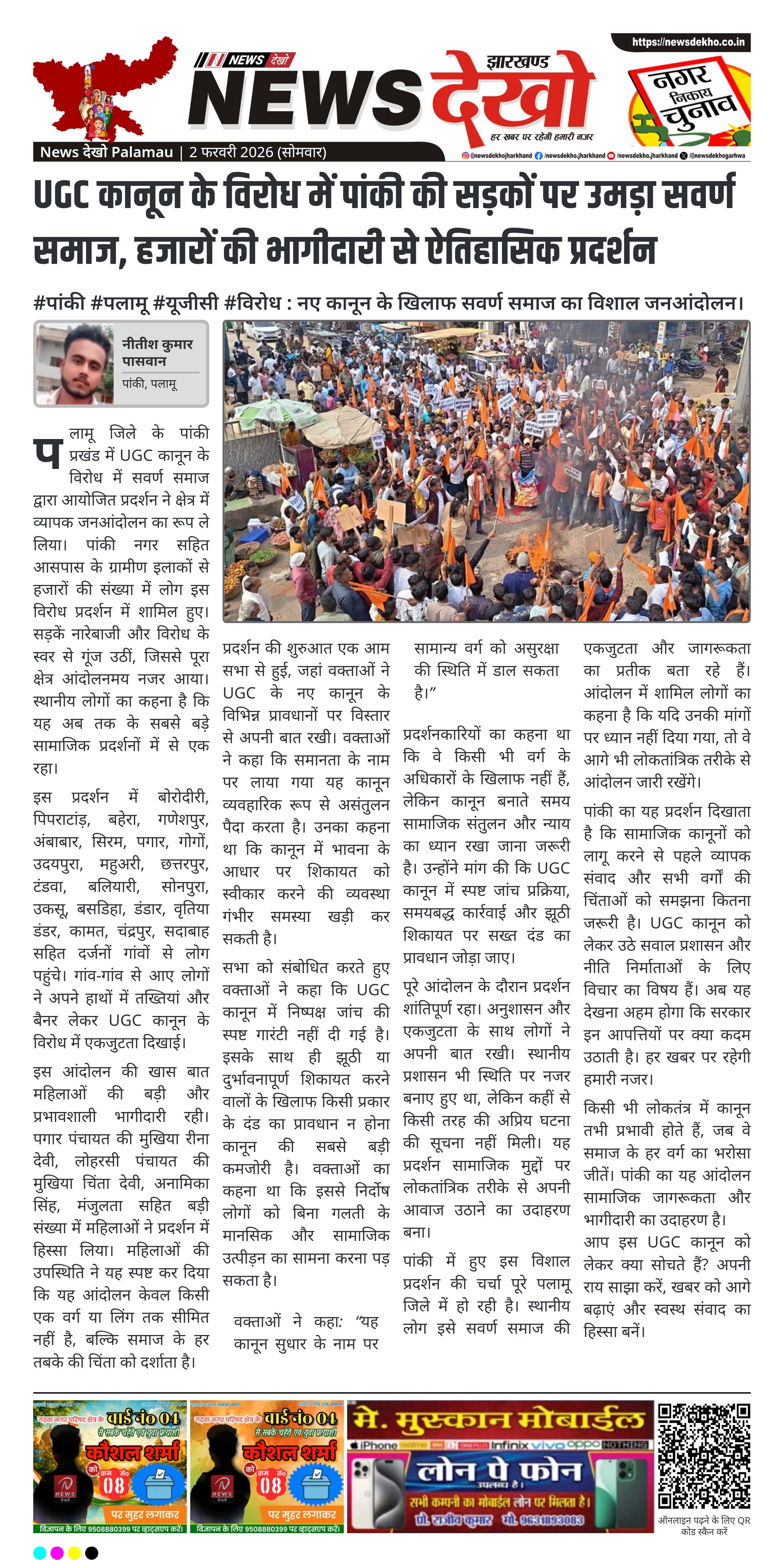 • पांकी, पलामू में UGC कानून के विरोध में विशाल प्रदर्शन।