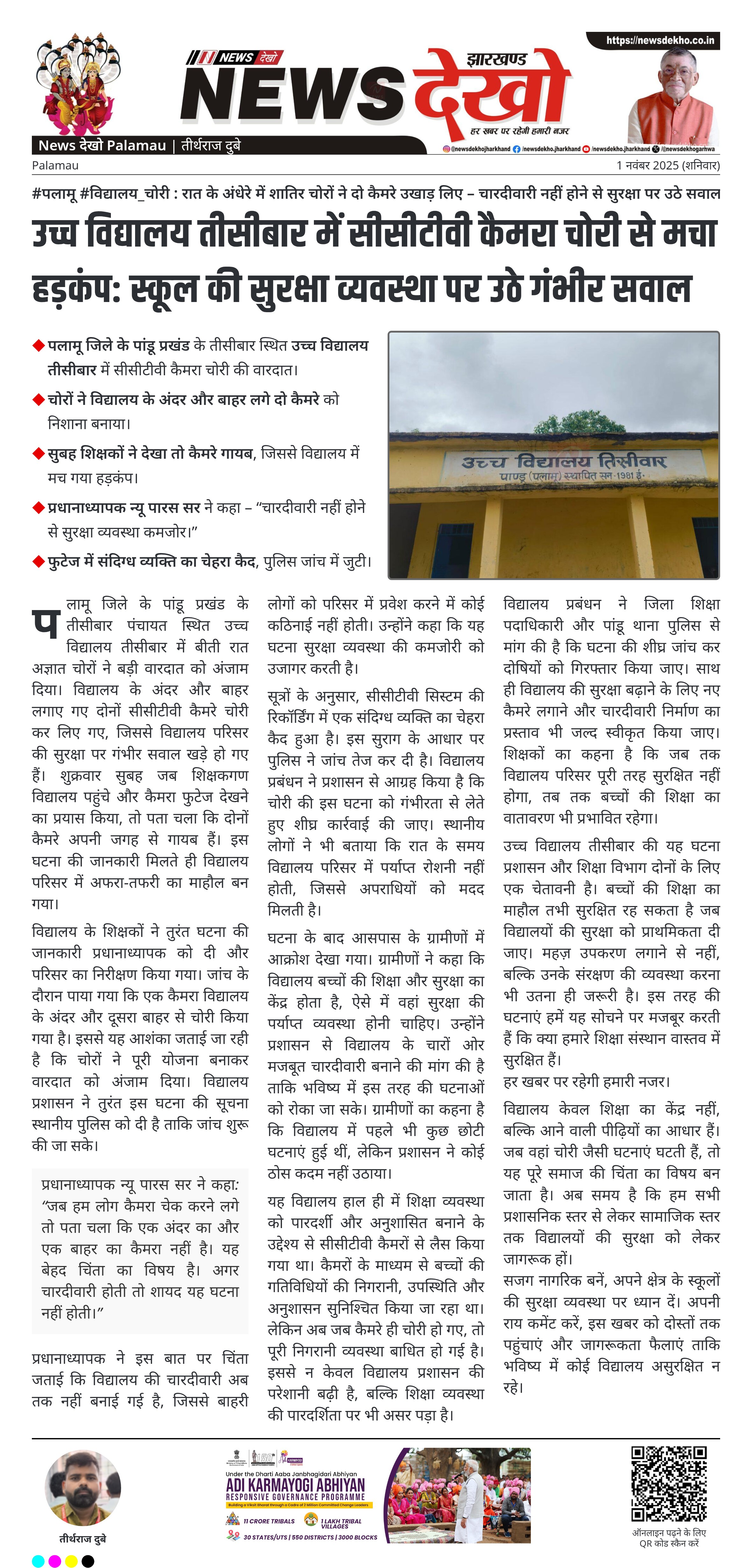#पलामू #विद्यालय_चोरी : रात के अंधेरे में शातिर चोरों ने दो कैमरे उखाड़ लिए – चारदीवारी नहीं होने से सुरक्षा पर उठे सवाल