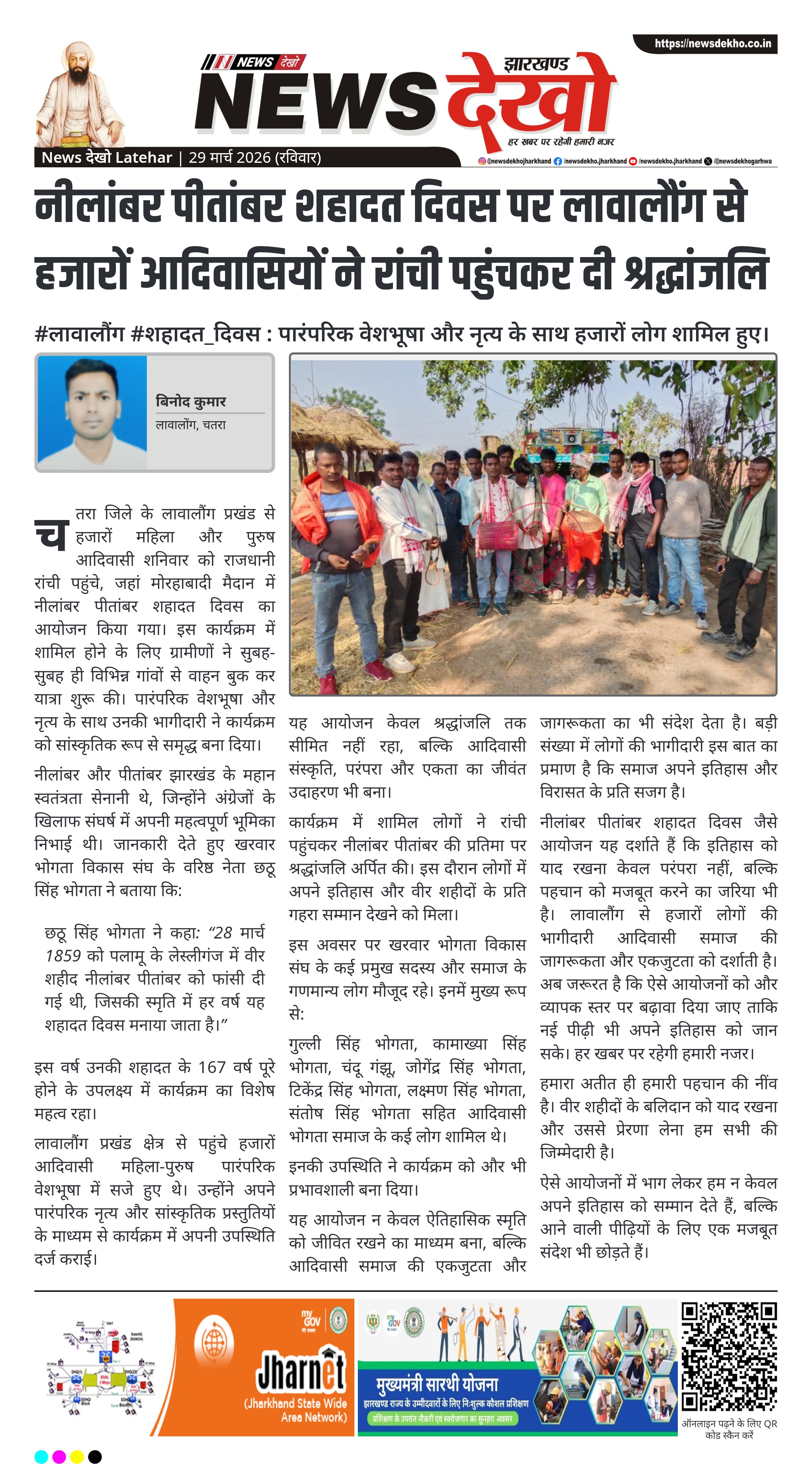 नीलांबर पीतांबर शहादत दिवस जैसे आयोजन यह दर्शाते हैं कि इतिहास को याद रखना केवल परंपरा नहीं, बल्कि पहचान को मजबूत करने का जरिया भी है। लावालौंग से हजारों लोगों की भागीदारी आदिवासी समाज की जागरूकता और एकजुटता को दर्शाती है। अब जरूरत है कि ऐसे आयोजनों को और व्यापक स्तर पर बढ़ावा दिया जाए ताकि नई पीढ़ी भी अपने इतिहास को जान सके। हर खबर पर रहेगी हमारी नजर।