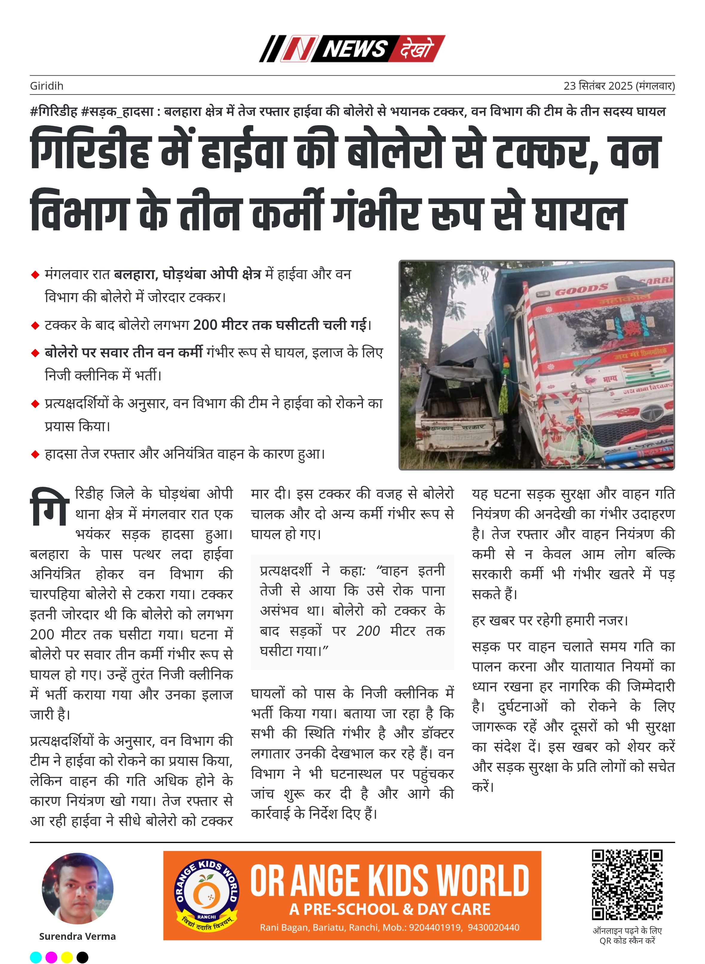 #गिरिडीह #सड़क_हादसा : बलहारा क्षेत्र में तेज रफ्तार हाईवा की बोलेरो से भयानक टक्कर, वन विभाग की टीम के तीन सदस्य घायल