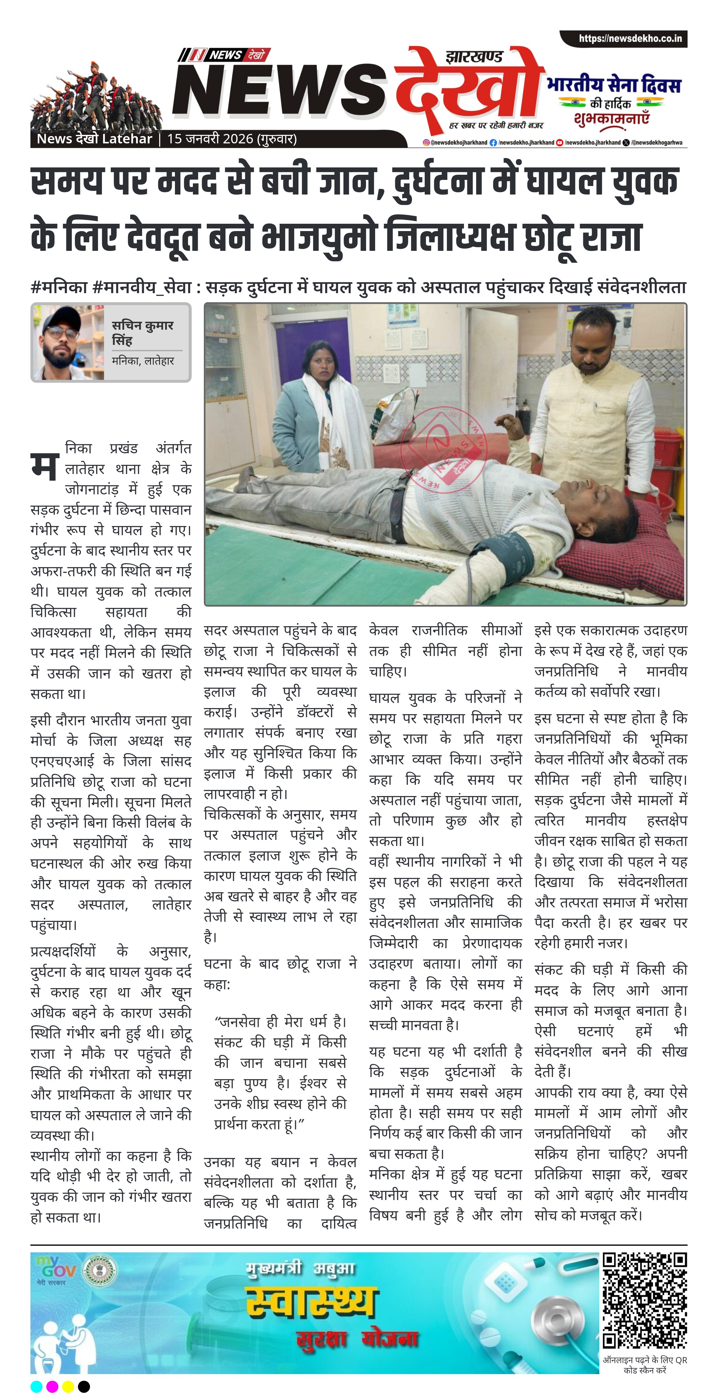 समय पर मदद से बची जान, दुर्घटना में घायल युवक के लिए देवदूत बने भाजयुमो जिलाध्यक्ष छोटू राजा