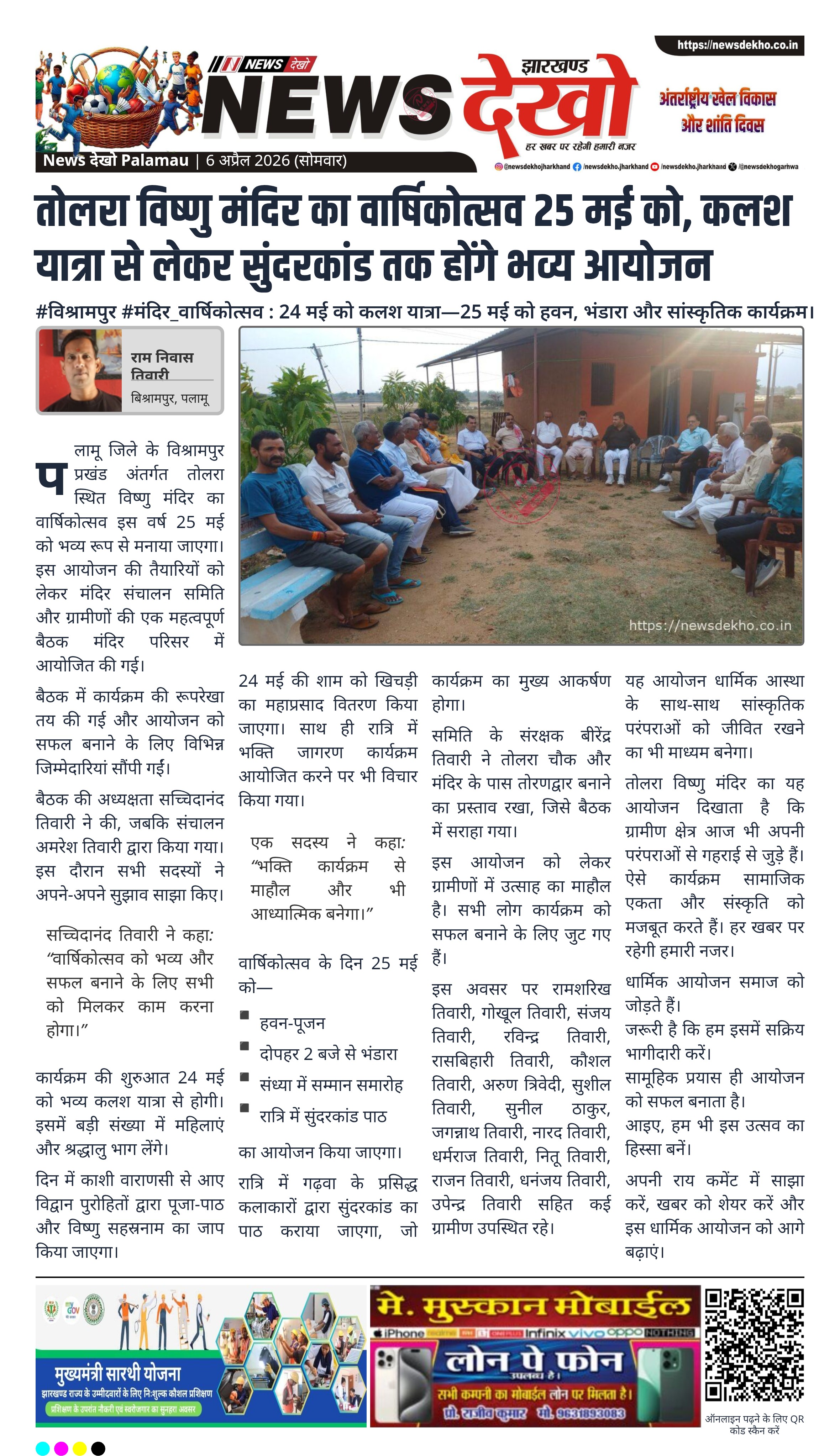 #विश्रामपुर #मंदिर_वार्षिकोत्सव : 24 मई को कलश यात्रा—25 मई को हवन, भंडारा और सांस्कृतिक कार्यक्रम।