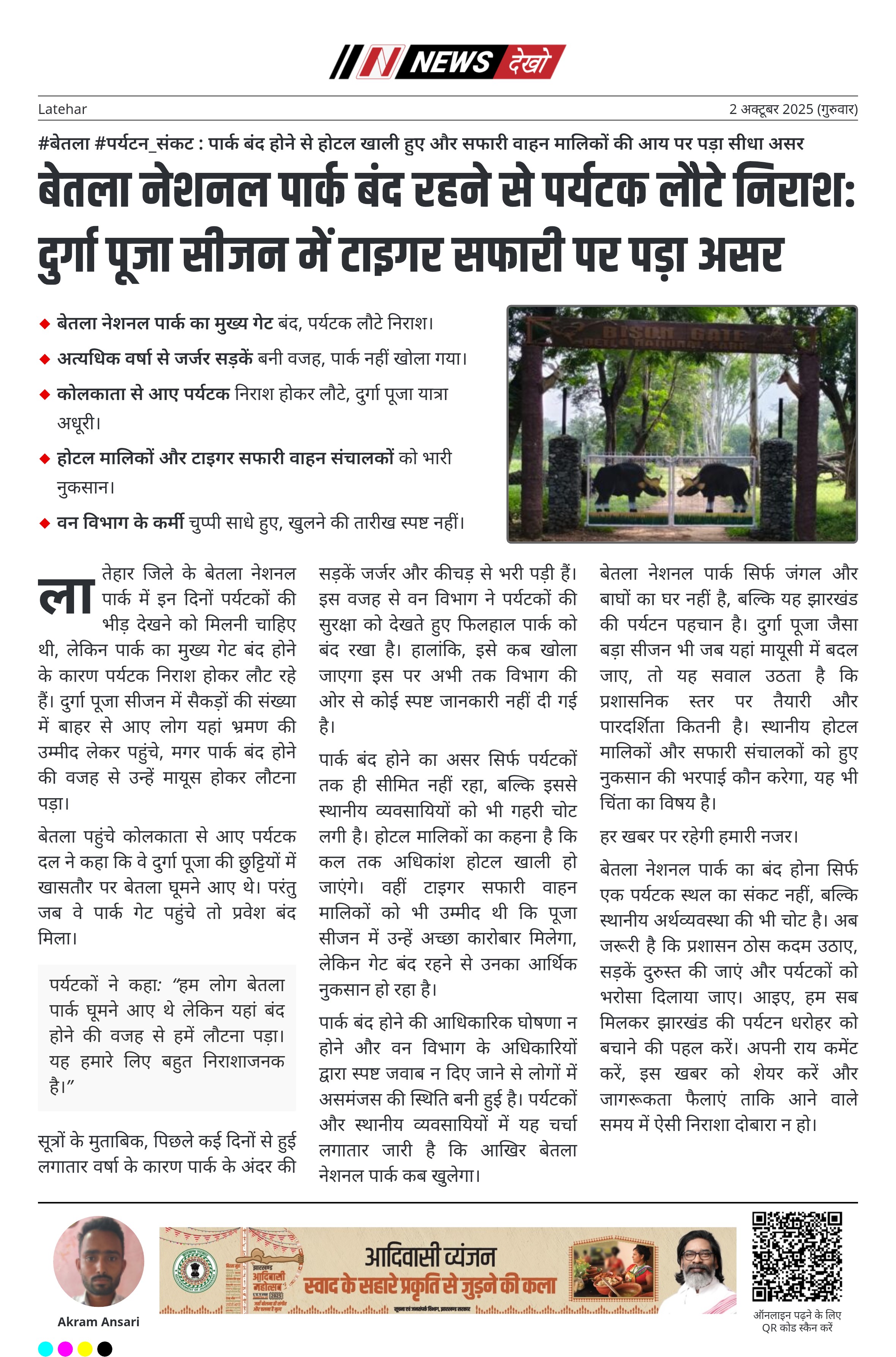 बेतला नेशनल पार्क सिर्फ जंगल और बाघों का घर नहीं है, बल्कि यह झारखंड की पर्यटन पहचान है। दुर्गा पूजा जैसा बड़ा सीजन भी जब यहां मायूसी में बदल जाए, तो यह सवाल उठता है कि प्रशासनिक स्तर पर तैयारी और पारदर्शिता कितनी है। स्थानीय होटल मालिकों और सफारी संचालकों को हुए नुकसान की भरपाई कौन करेगा, यह भी चिंता का विषय है।
