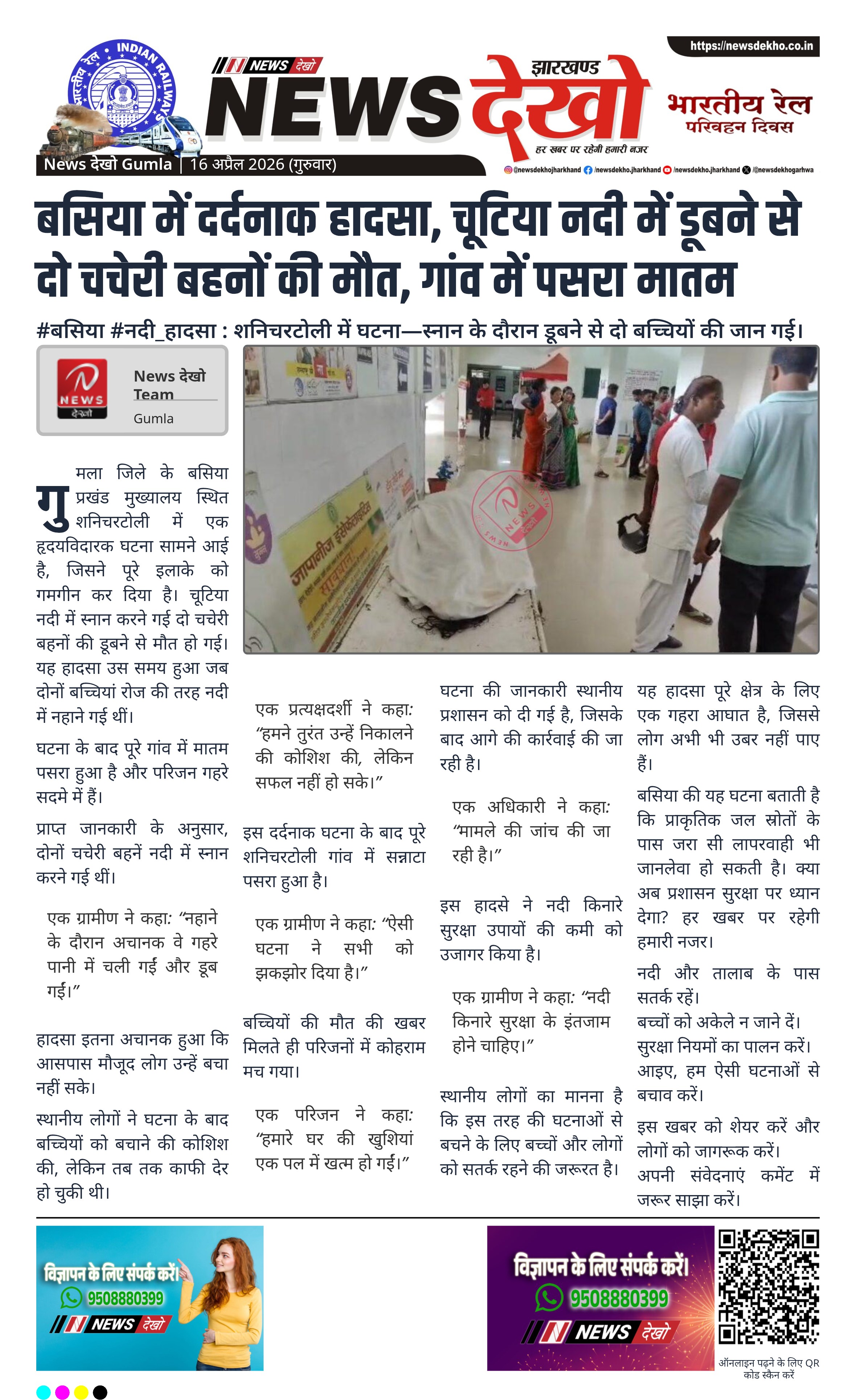बसिया की यह घटना बताती है कि प्राकृतिक जल स्रोतों के पास जरा सी लापरवाही भी जानलेवा हो सकती है। क्या अब प्रशासन सुरक्षा पर ध्यान देगा? हर खबर पर रहेगी हमारी नजर।