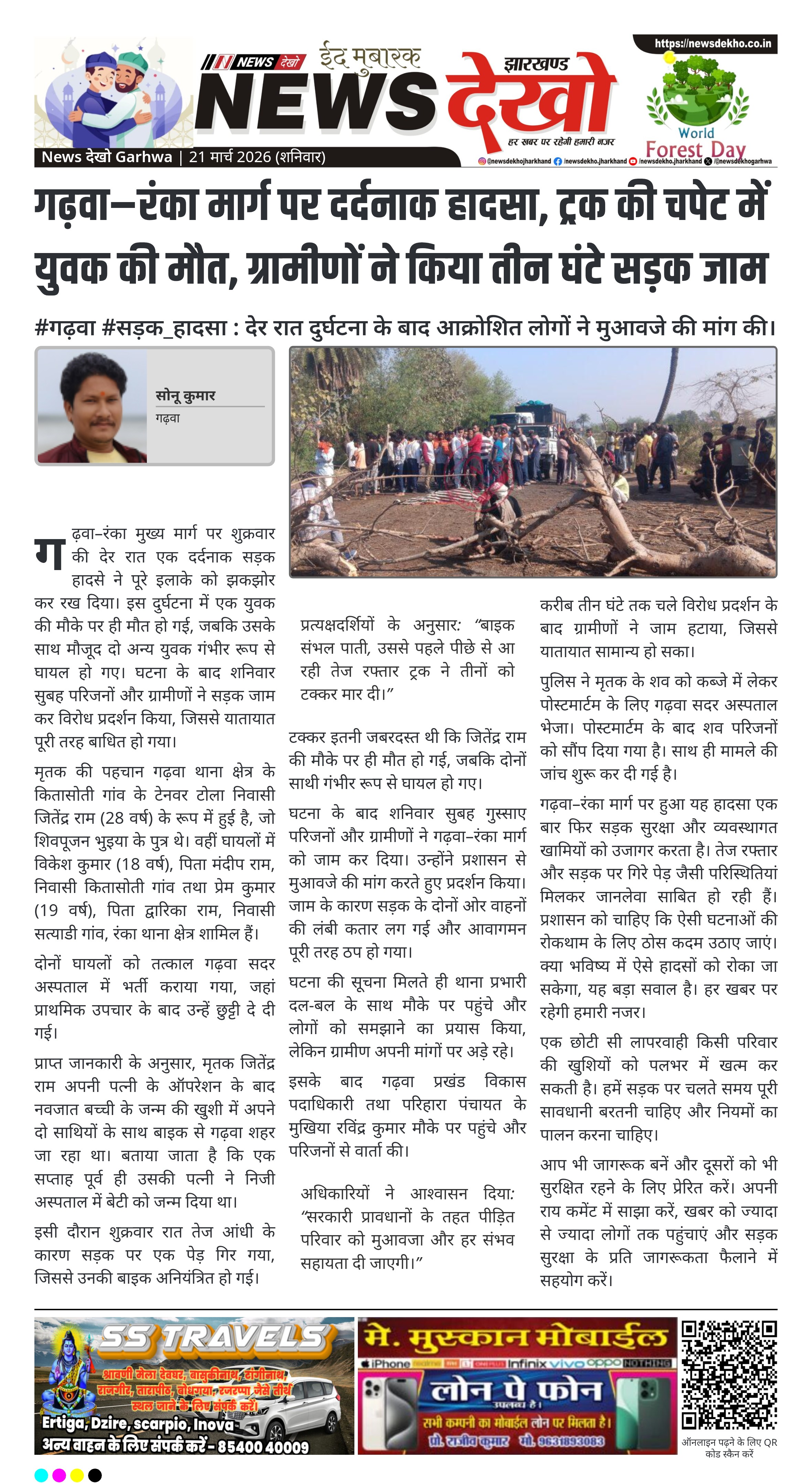 - गढ़वा–रंका मार्ग पर देर रात हुआ भीषण सड़क हादसा।