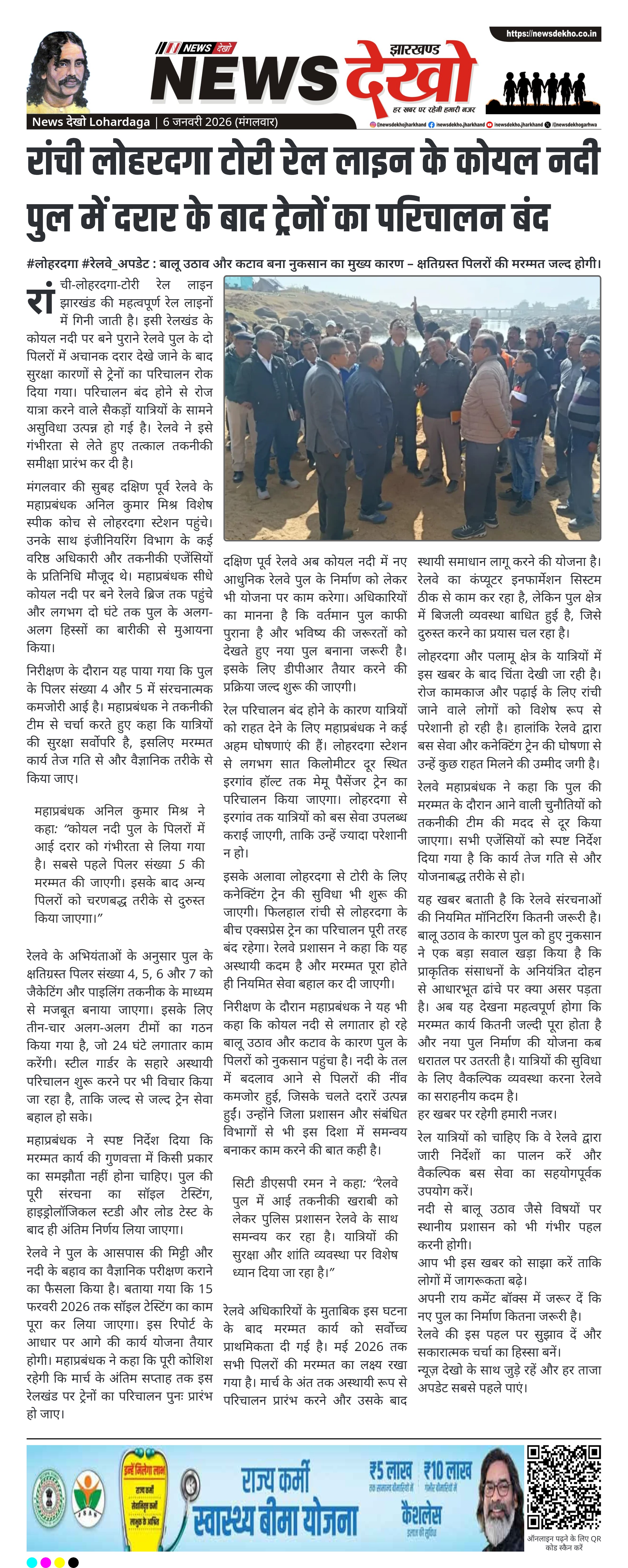#लोहरदगा #रेलवे_अपडेट : बालू उठाव और कटाव बना नुकसान का मुख्य कारण – क्षतिग्रस्त पिलरों की मरम्मत जल्द होगी।