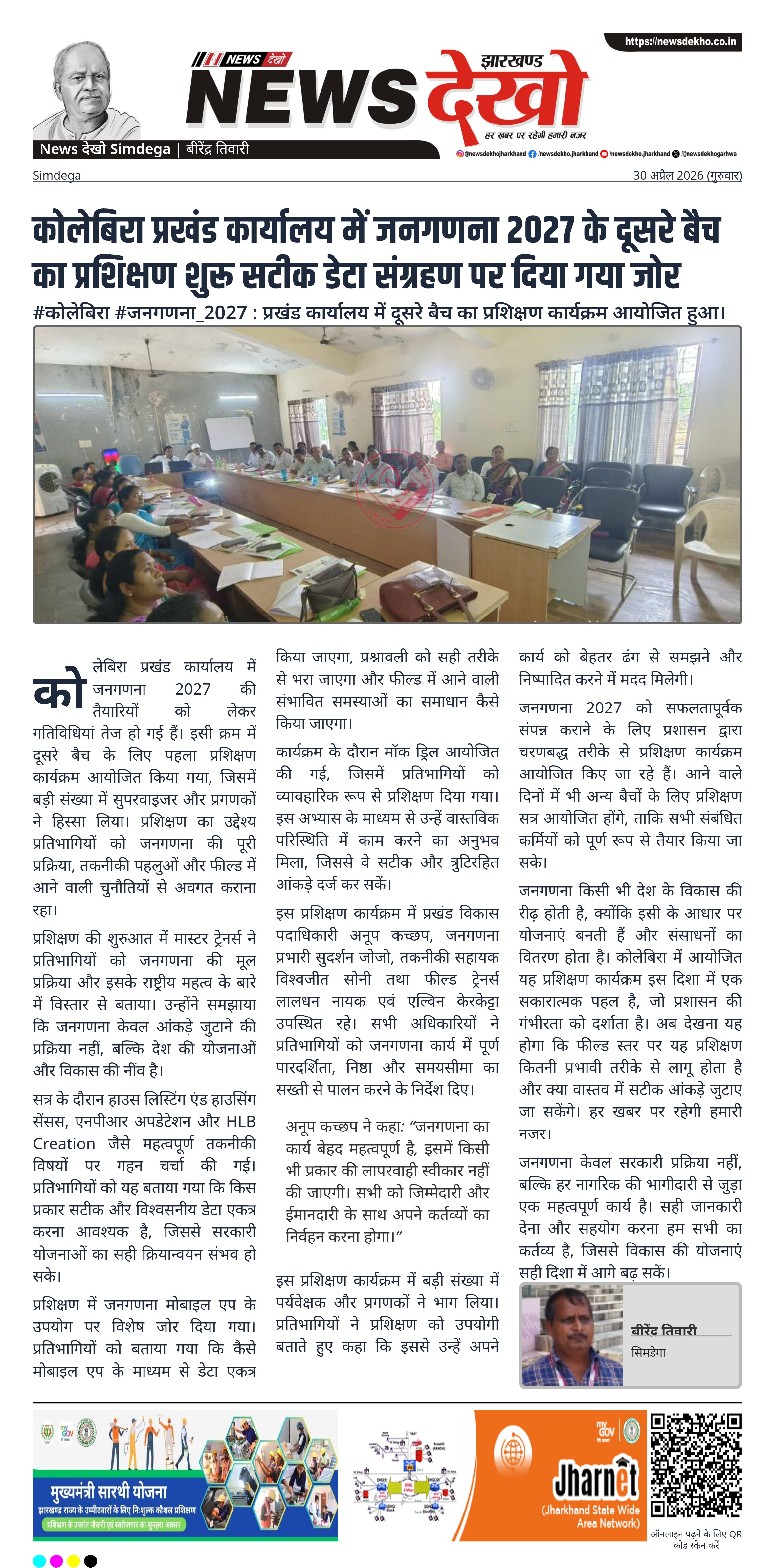 - कोलेबिरा प्रखंड कार्यालय में जनगणना 2027 का प्रशिक्षण कार्यक्रम आयोजित।