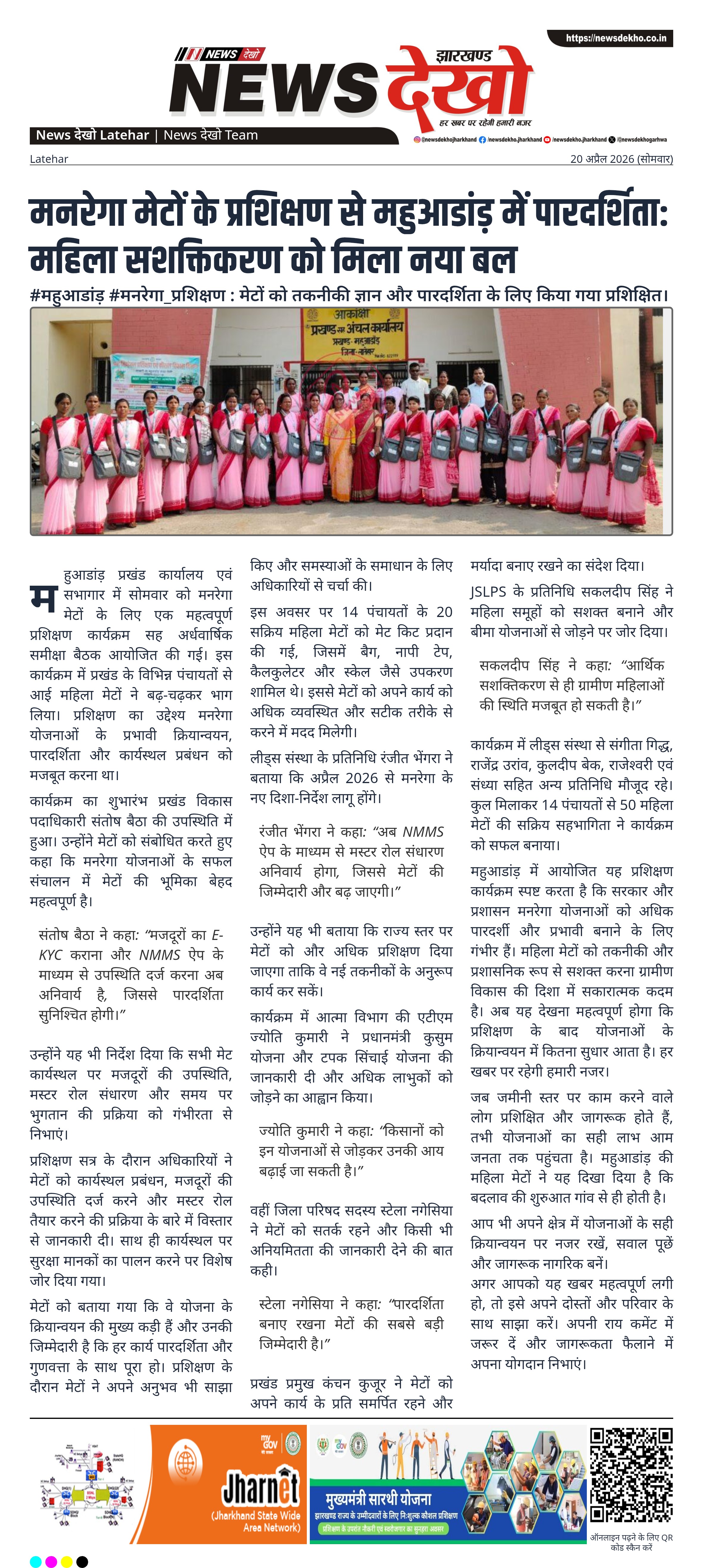 रंजीत भेंगरा ने कहा: “अब NMMS ऐप के माध्यम से मस्टर रोल संधारण अनिवार्य होगा, जिससे मेटों की जिम्मेदारी और बढ़ जाएगी।”