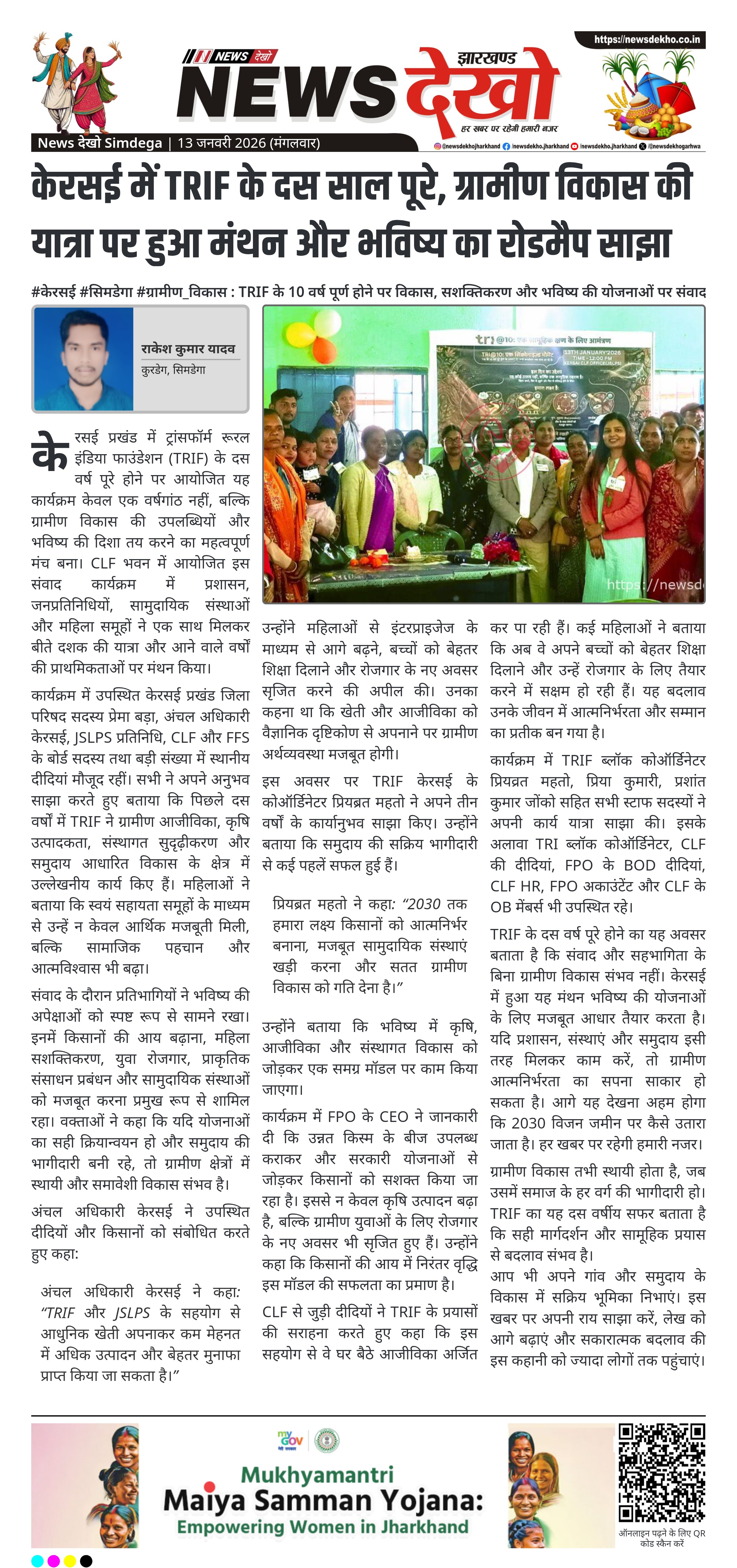 ग्रामीण विकास तभी स्थायी होता है, जब उसमें समाज के हर वर्ग की भागीदारी हो। TRIF का यह दस वर्षीय सफर बताता है कि सही मार्गदर्शन और सामूहिक प्रयास से बदलाव संभव है।